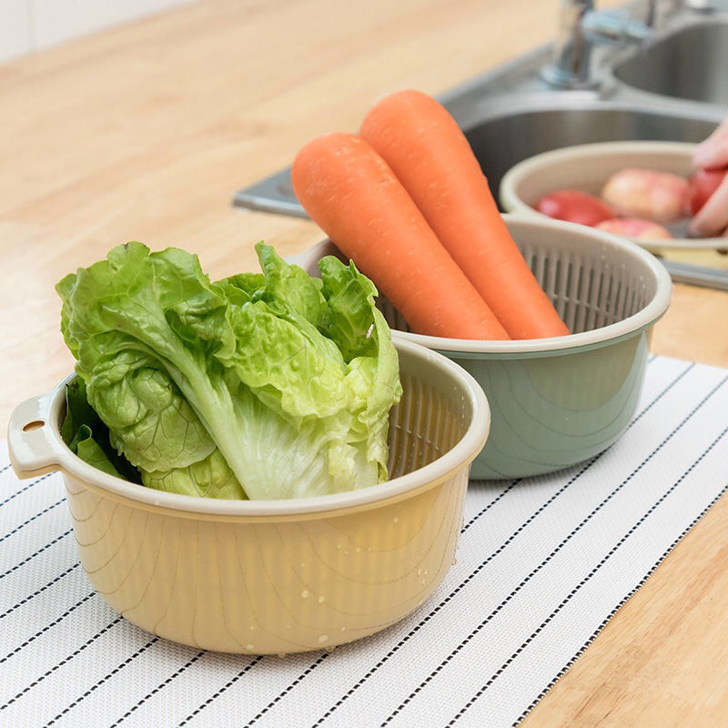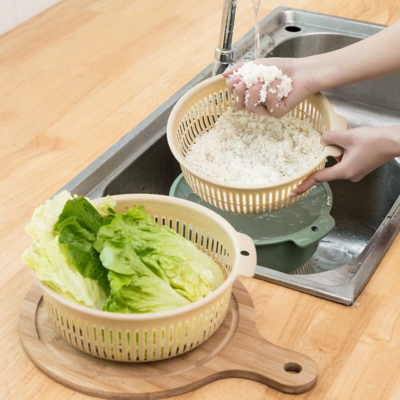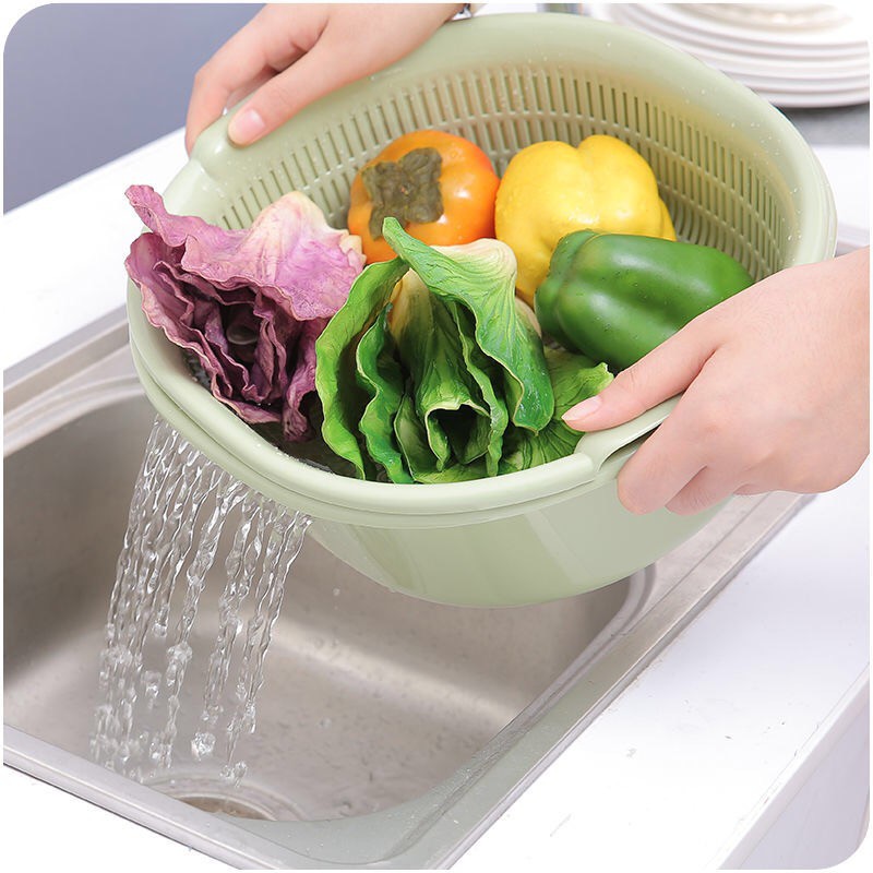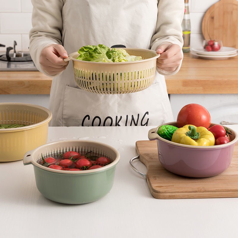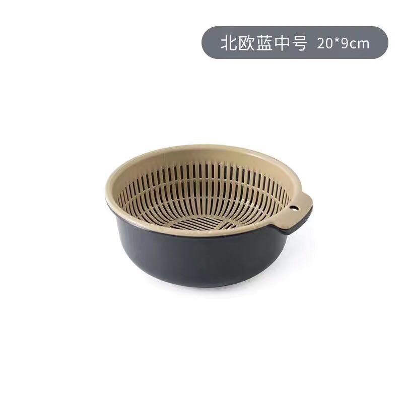 Plain Double Washbasin Kitchen Plastic Drain Basin Fruit Vegetable Washing Basket 1 Pcs