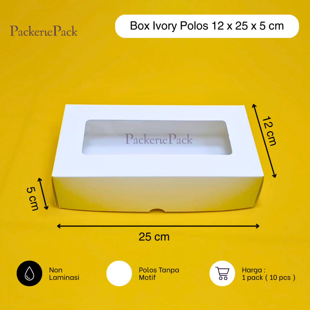 Plain Ivory Cake Box 12x25x5cm Plain Ivory Premium Window 12 x 25 x 5 (10 Pcs) Food Storage Container