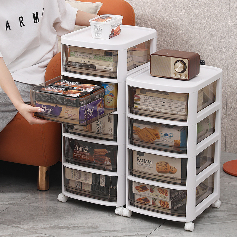 Plastic Drawer Storage Cabinet/Visible Storage Cabinet/Multi-layer Household Cabinet with Wheels