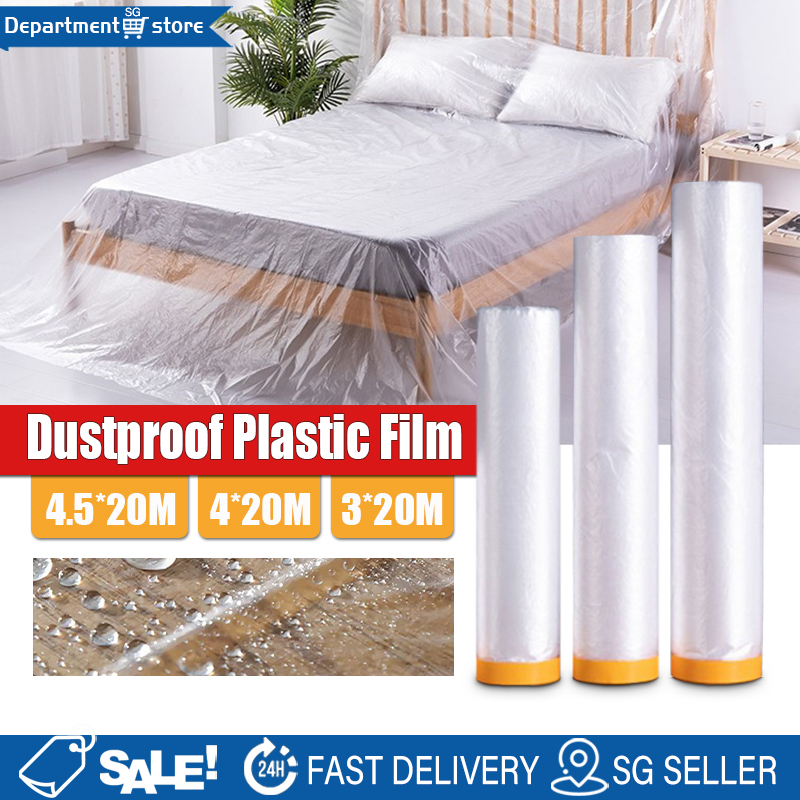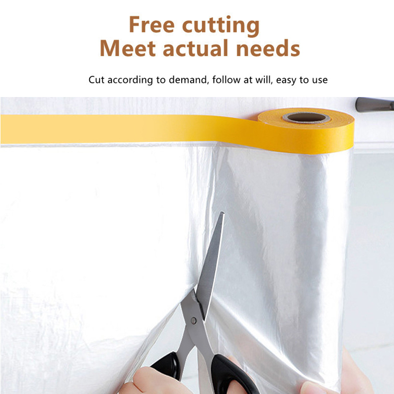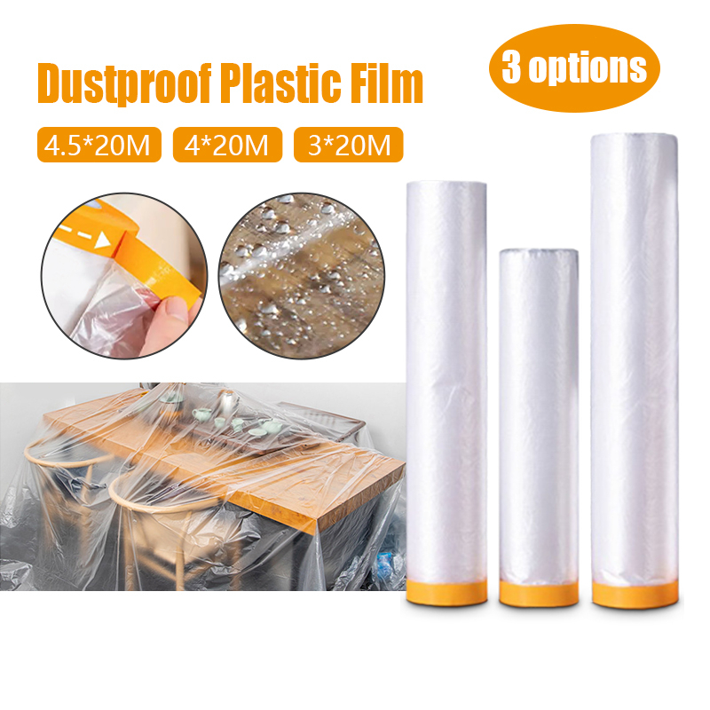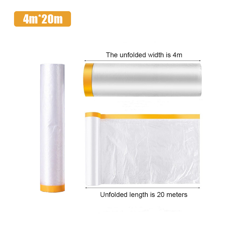 Plastic Dust Cover Pre-Taped Plastic Drop Sheet Roll Disposable Furniture Dustproof Cover Protective for Renovation
