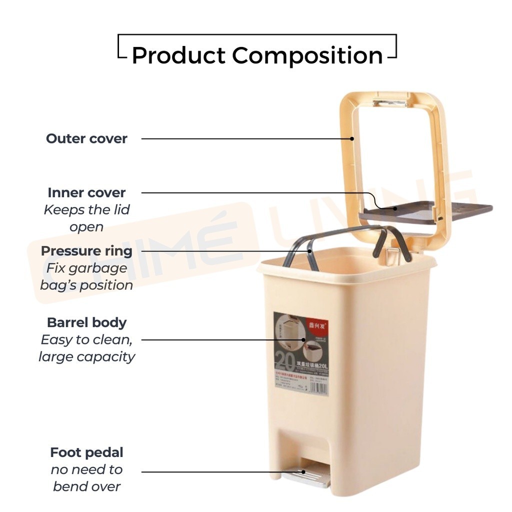 Plastic Dustbin Waste Garbage Rubbish Bin | Dual Opening Floor Bin with Pedal Kitchen Bedroom Trash Bins Airtight Small