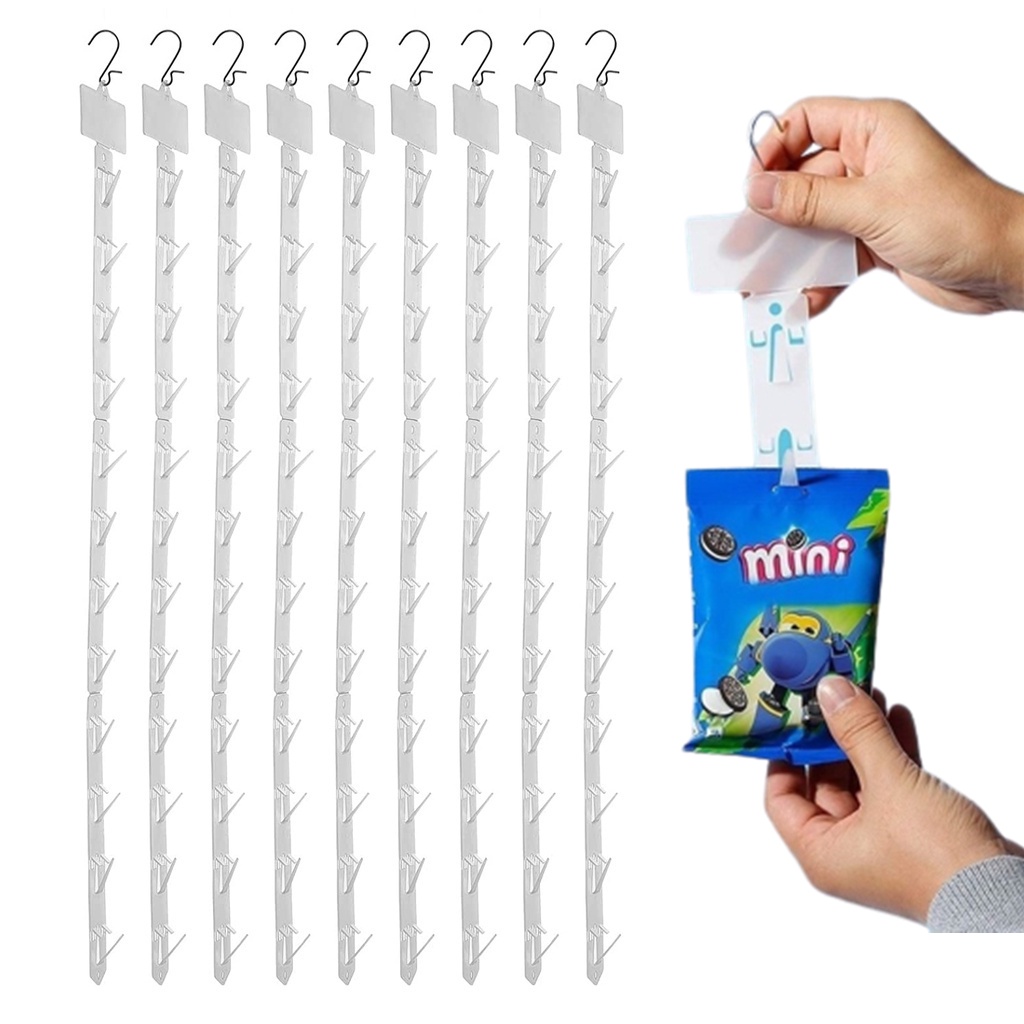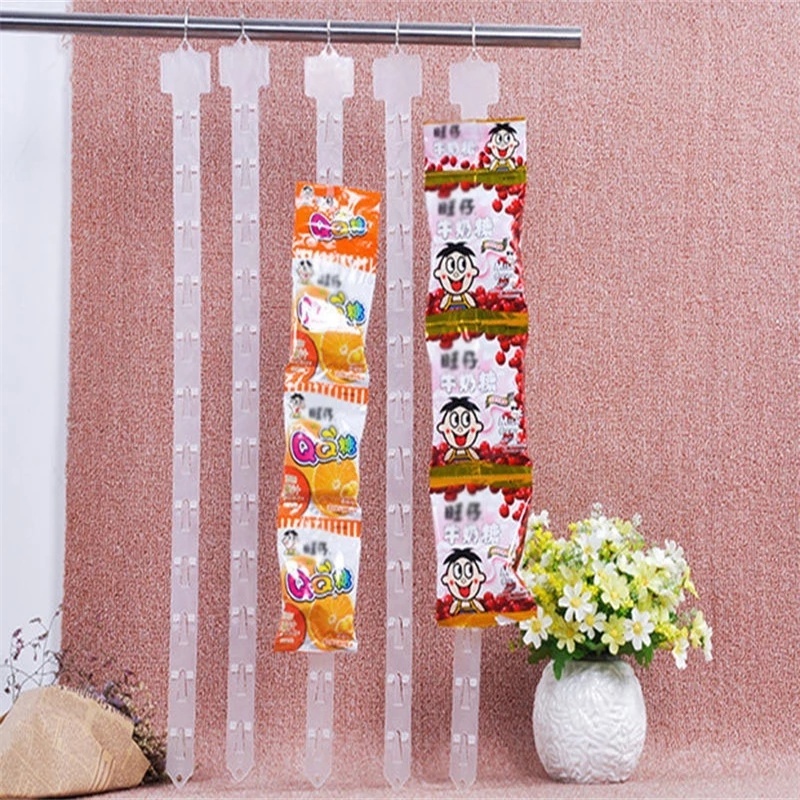 Plastic Merchandise Clear Display Hooks Strips Transparent Snack Hanging Clips Supermarket Commodity Storage Strip