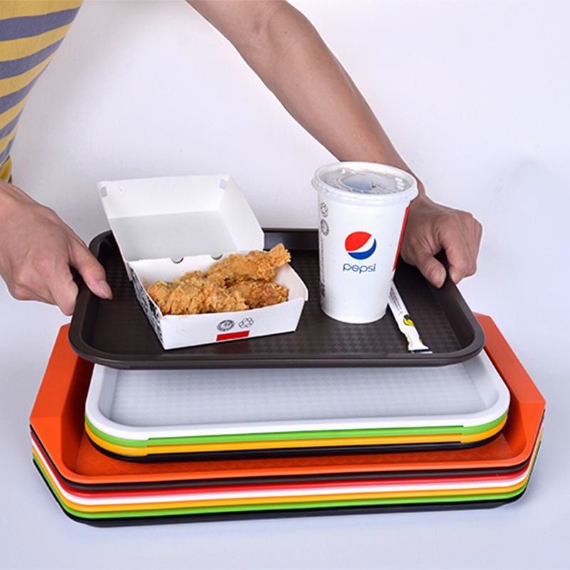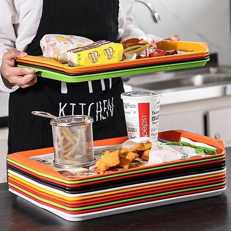 Plastic Tray Buffet Rectangular Tray Plates Canteen Serving Plate for Fast Food Milk Tea Burger Restaurant Non-slip
