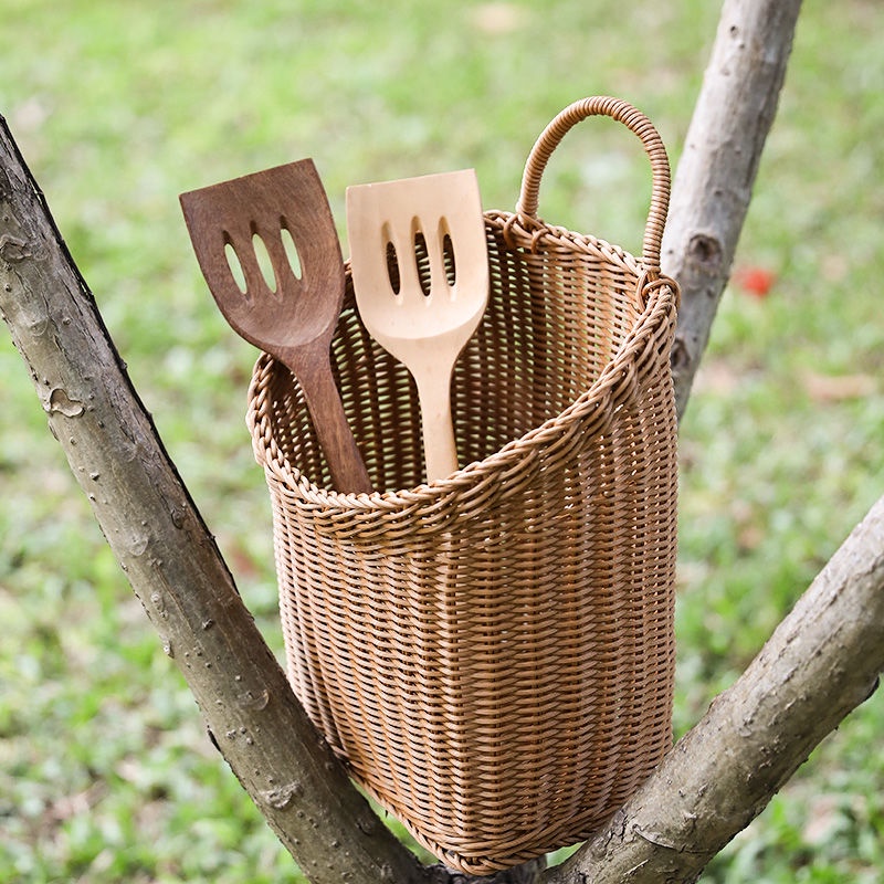 Plastic Wall Mount Storage Basket Kitchen Door behind Hanging Bag Wall Mountable Storage Basket Balcony Decoration Flower Basket Washed