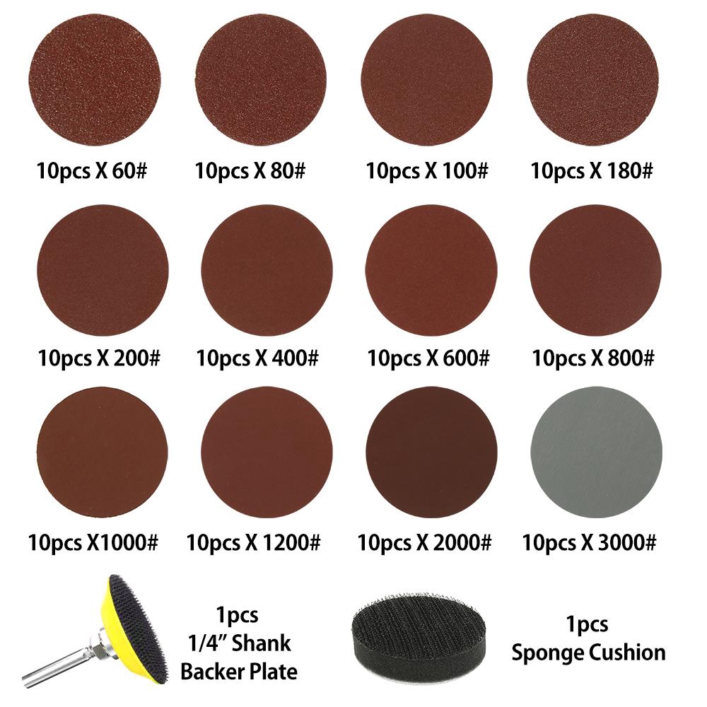 Plate and Sponge Cushion 120pcs 60-3000 Grit 2 Inch Sander Disc Sanding Polishing Pad Sandpaper Tool with Shank Backer
