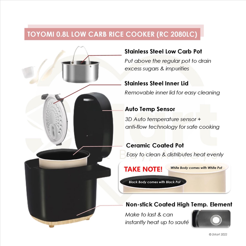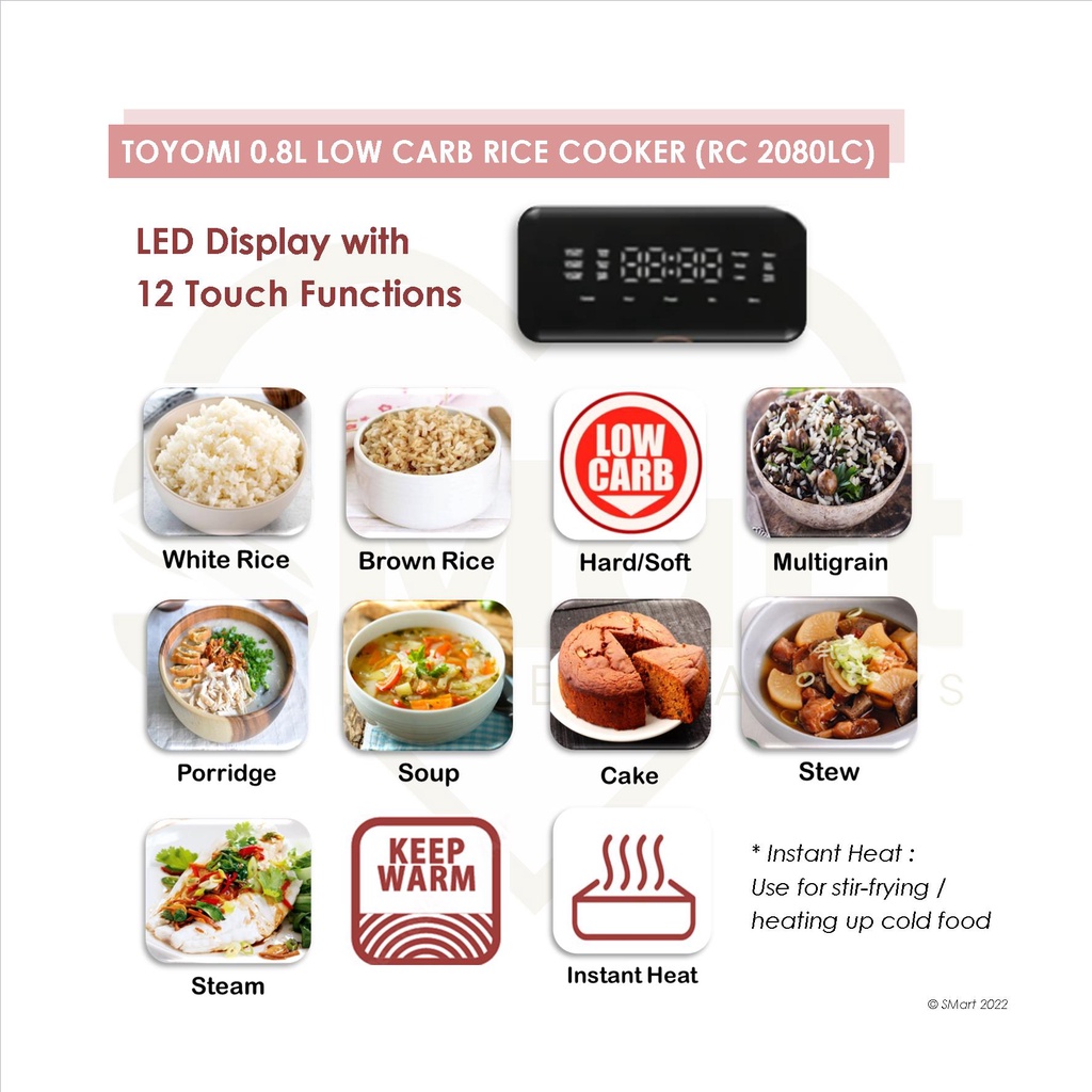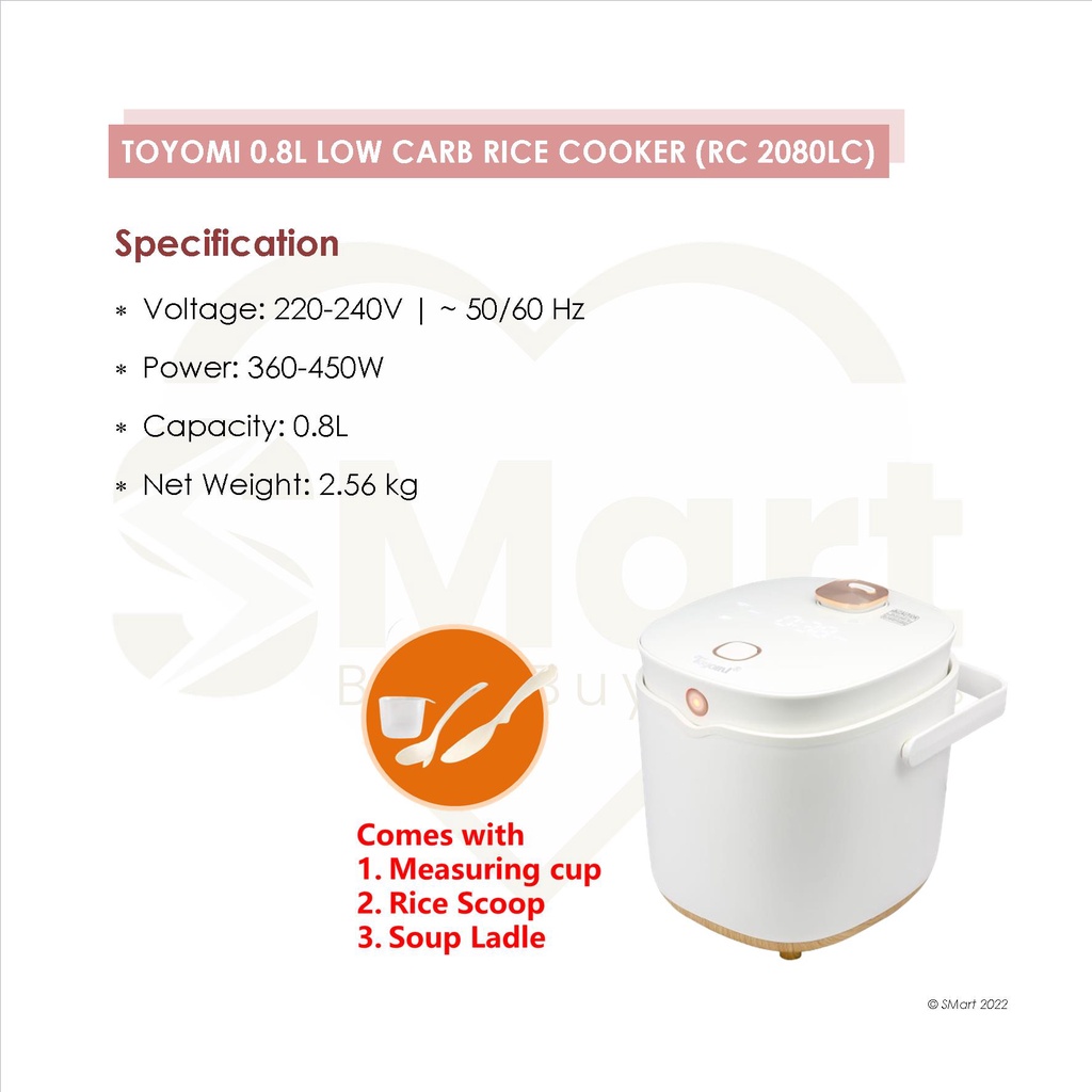 Toyomi 0.8L Low Carb Micro-Com Rice Cooker [RC 2080LC]