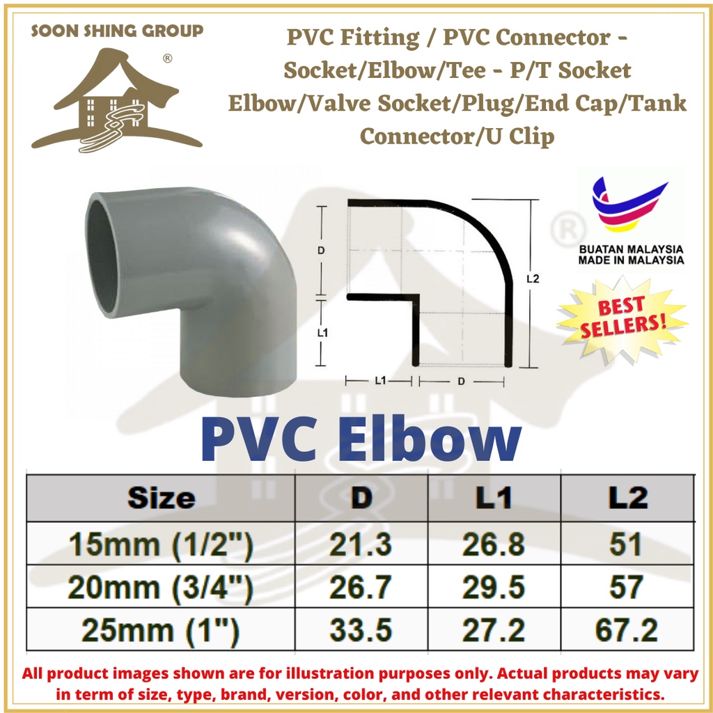Plumbing PVC Fitting 15MM/20MM/25MM Penyambung Paip PVC Socket, Elbow 90*, Elbow 45* Valve Socket, P/T Socket,Tee