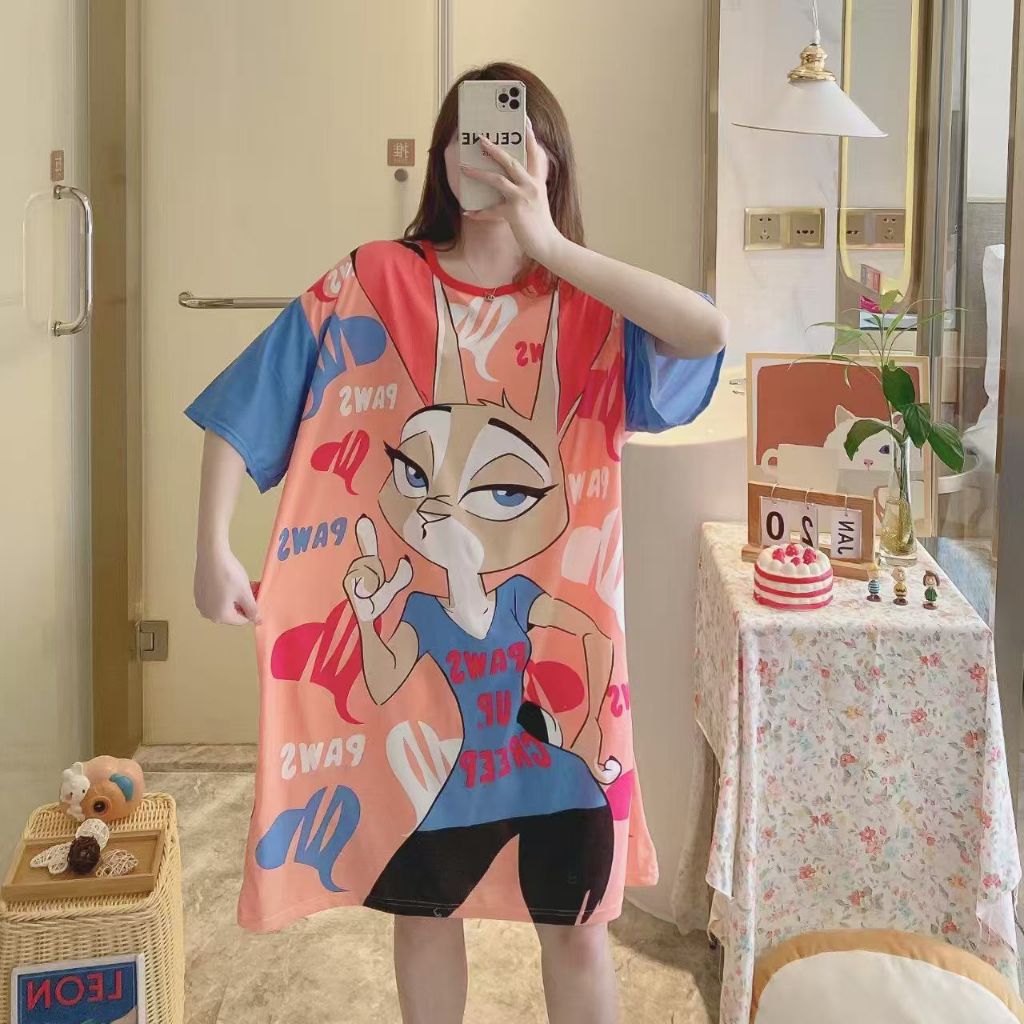 Plus Size Cartoon Pyjamas Women Baju Tidur Wanita Cartoon Sleepwear Nightwear Sleeping dress
