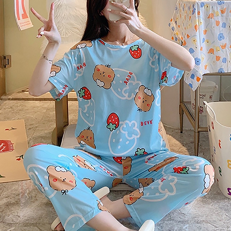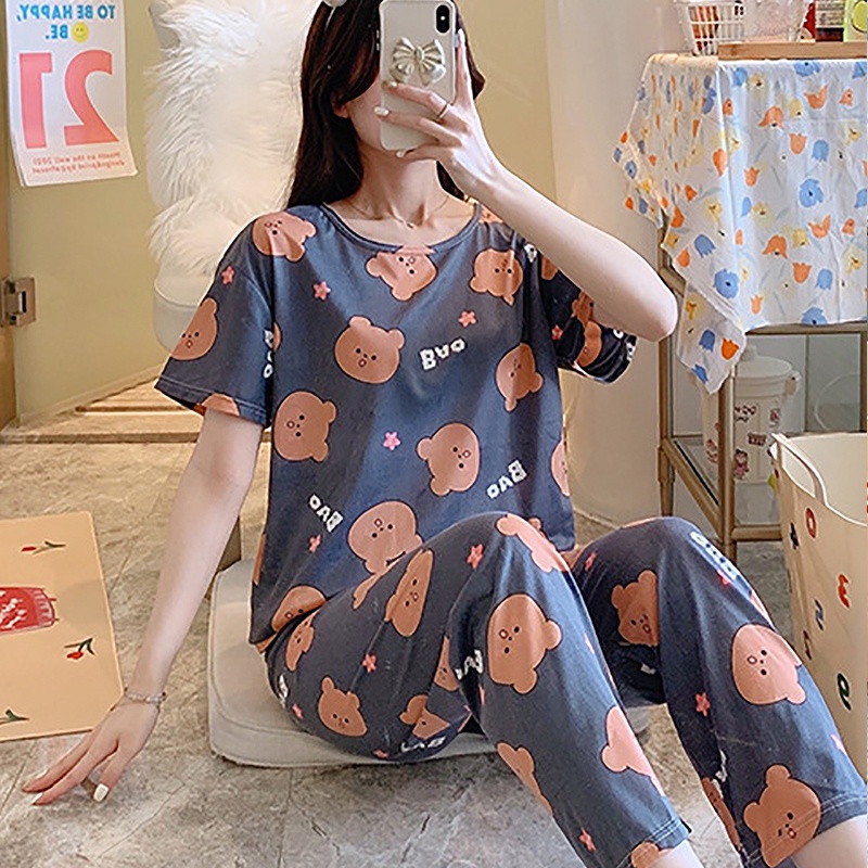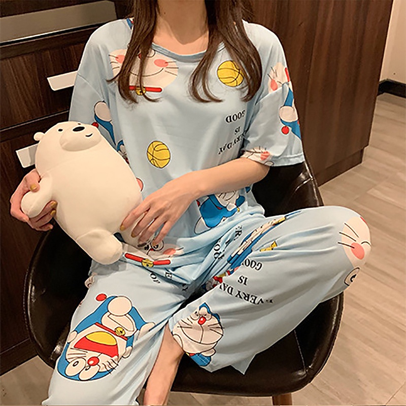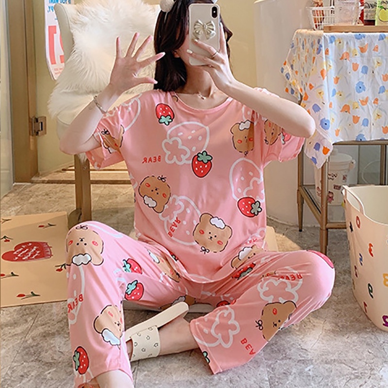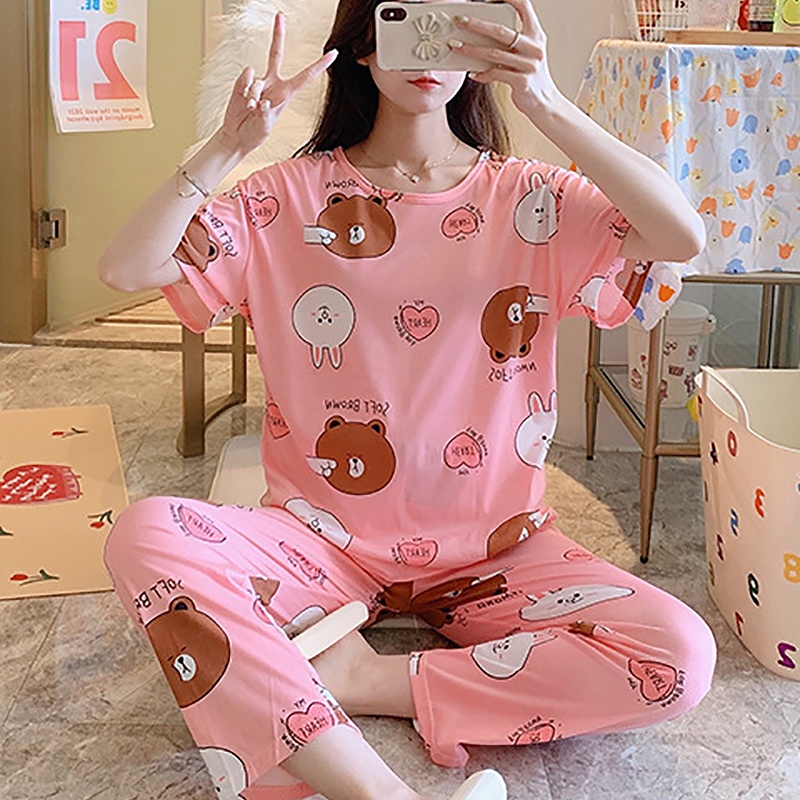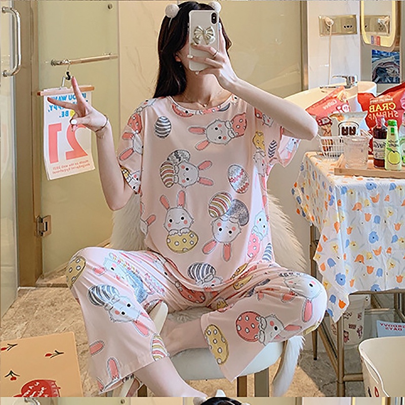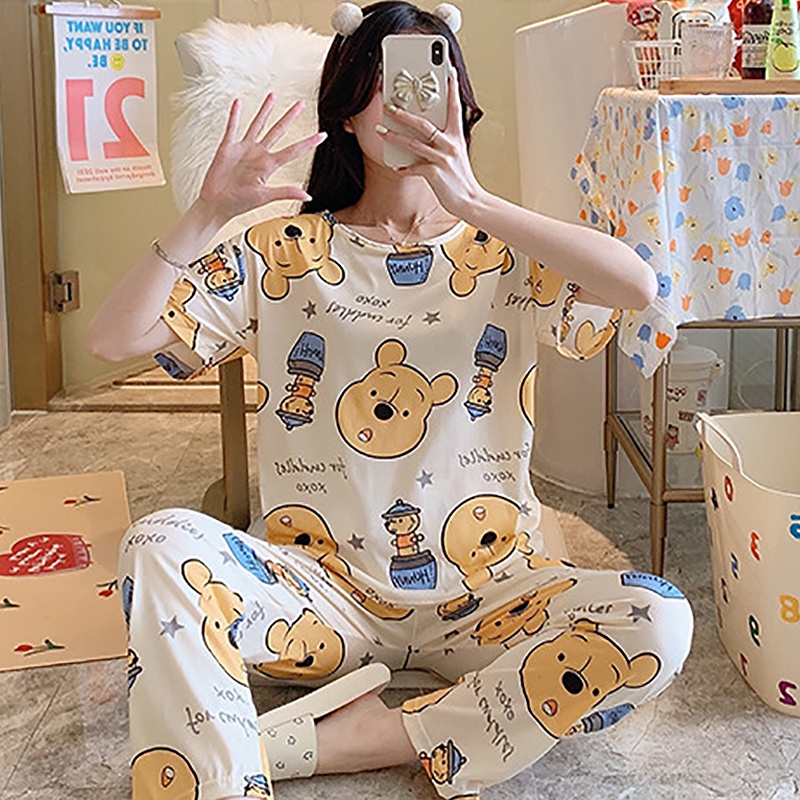 Plus Size Womens Sleepwear Cartoon Girls Pyjamas set T-shirts shorts sleeve long pants Ladies Pajamas Sets Home wear