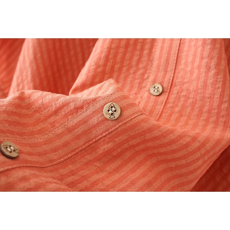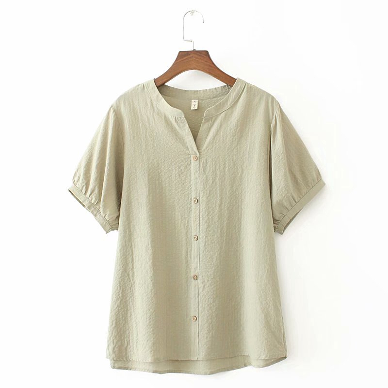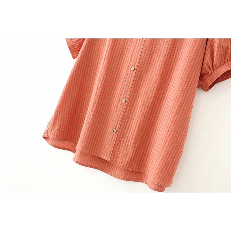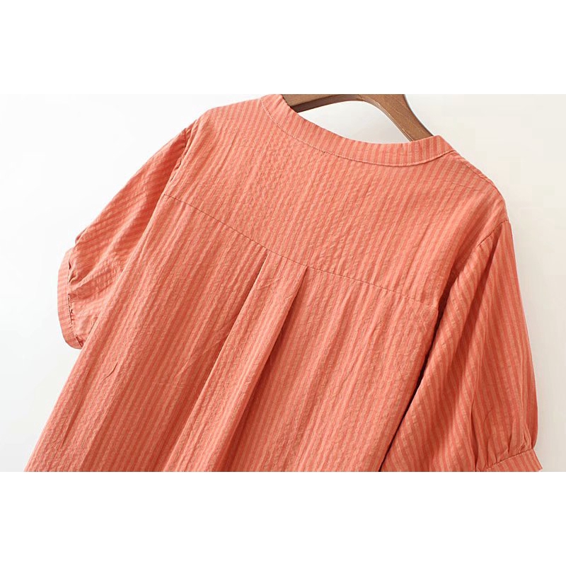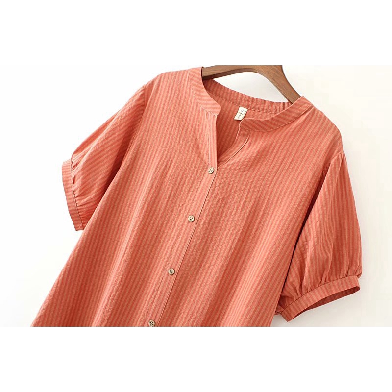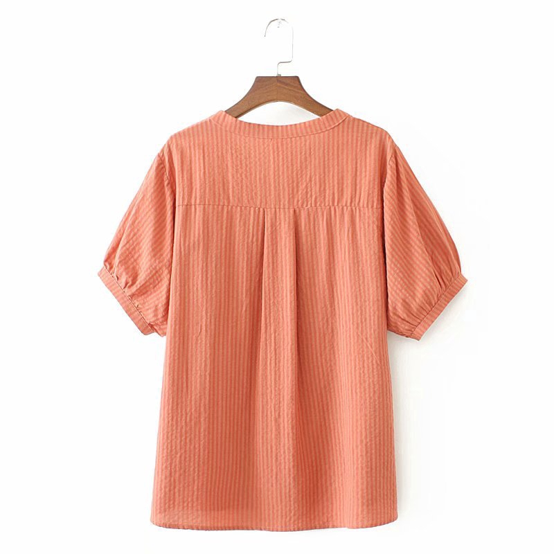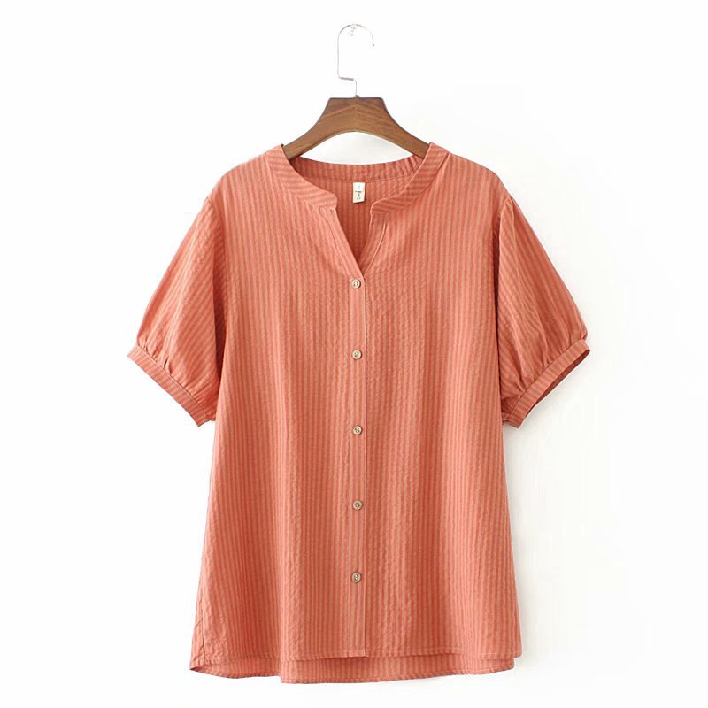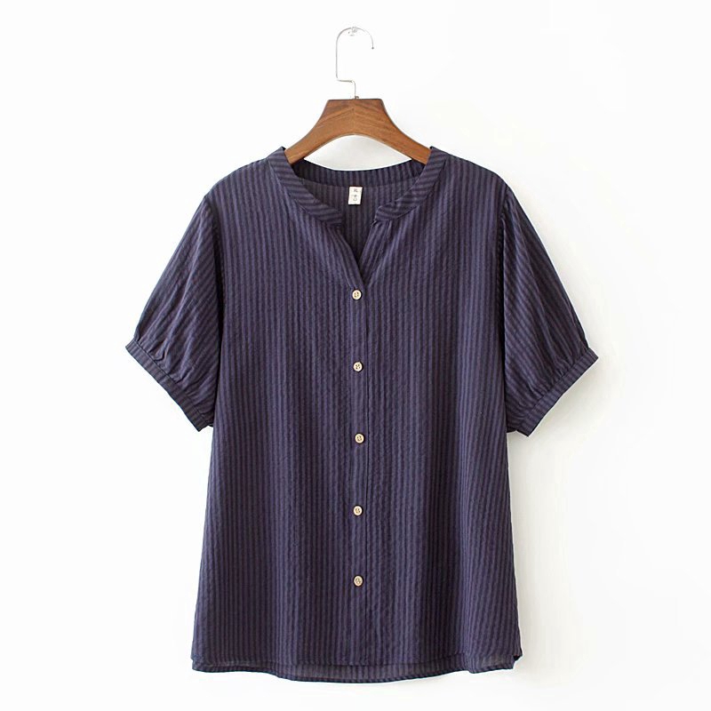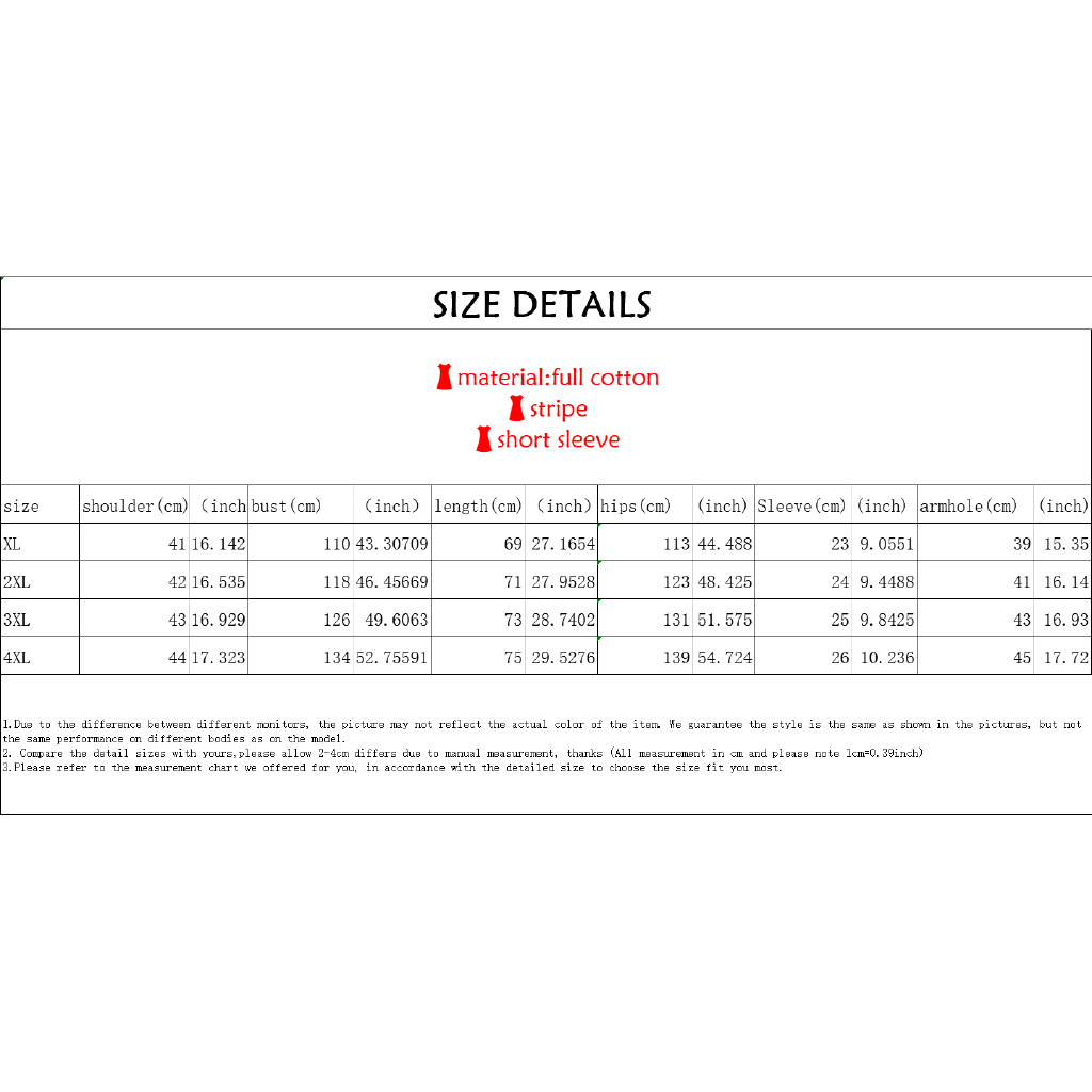 Plus Size XL-4XL Full Cotton Summer Tops Women's Short Sleeve Striped Blouse Female Oversized Blusas