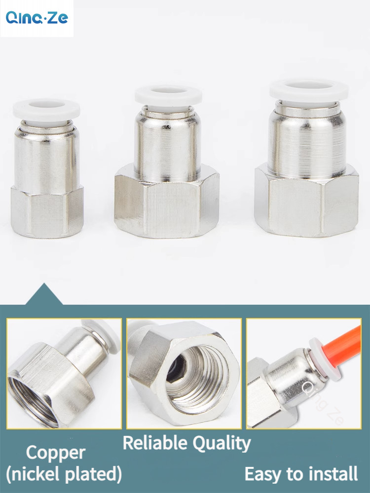 Pneumatic Components Quick Insert Air Pipe Joint Copper Joint Internal Thread Straight-through PCF4-01/6-02/8 10-04 BSP 1/8 1/4 3/8 1/2 Air Joint PCF Connector