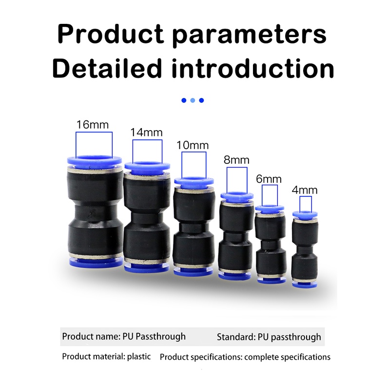 Pneumatic Fitting Pipe Connector Tube Air Quick Fittings Push In Hose Couping 4mm 6mm 8mm 10mm 12mm 16mm PU PE PY PK