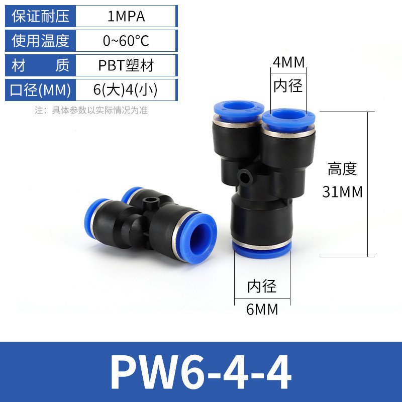 Pneumatic Quick Connector 4mm 6mm 8mm 10mm 12mm 14mm 16mm Y Type Pneumatic Connector Plastic Connector Quick Air Pipe Connector 3-Way PY PW