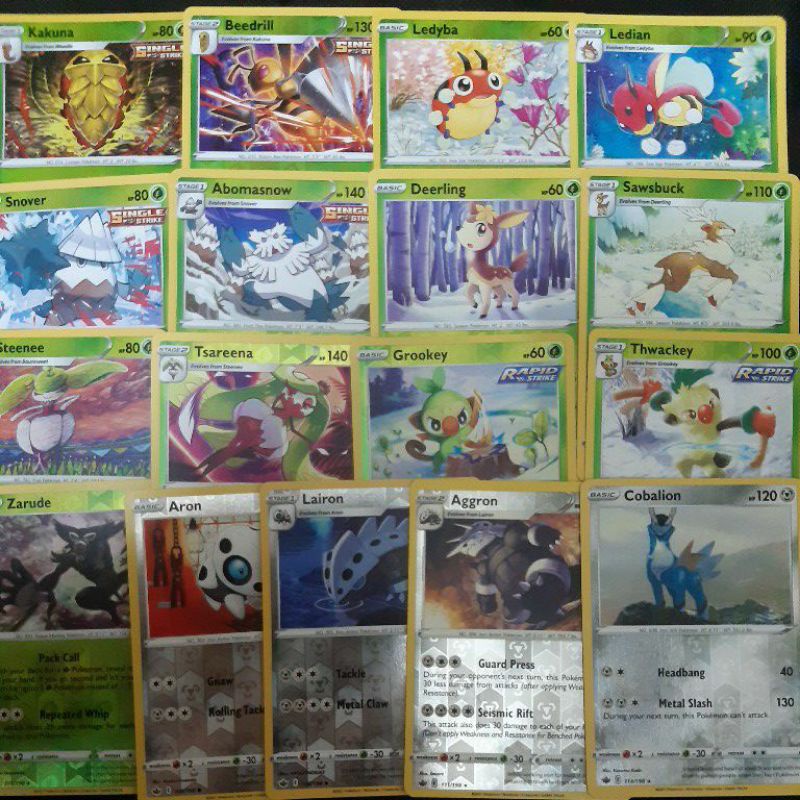Pokemon Card TCG: Chilling Reign: Beedrill/ Ledian/ Heracross/ Grookey/ Rillaboom/ Zarude/Aggron/Cobalion (REVERSE HOLO)