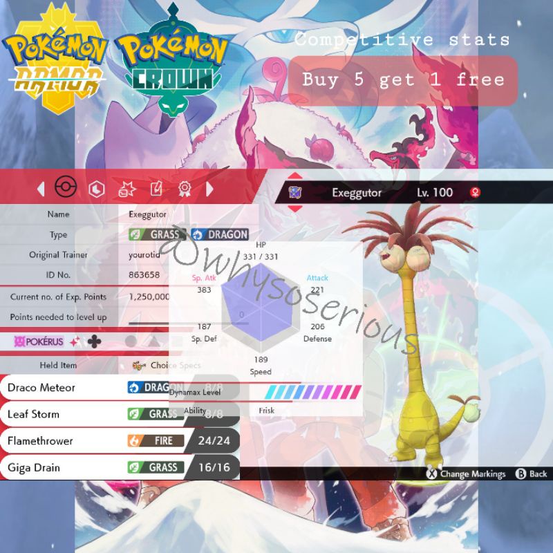 Pokemon Sword and Shield, Square Shiny Alolan Exeggutor and Kanto Exeggutor, Battle ready (Digital Game Code)