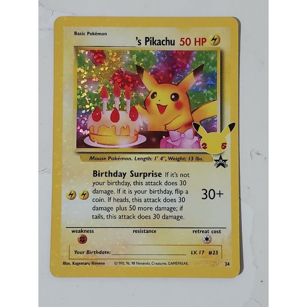 Pokemon birthday pikachu holo foil celebration 25th anniversary card