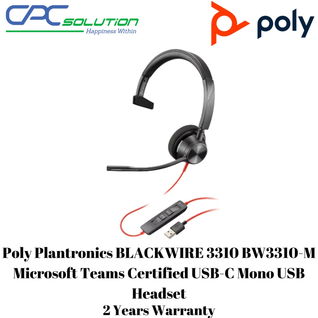 Poly Plantronics BLACKWIRE 3310 BW3310-M Microsoft Teams Certified USB-C Mono USB Headset