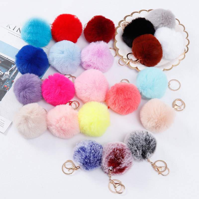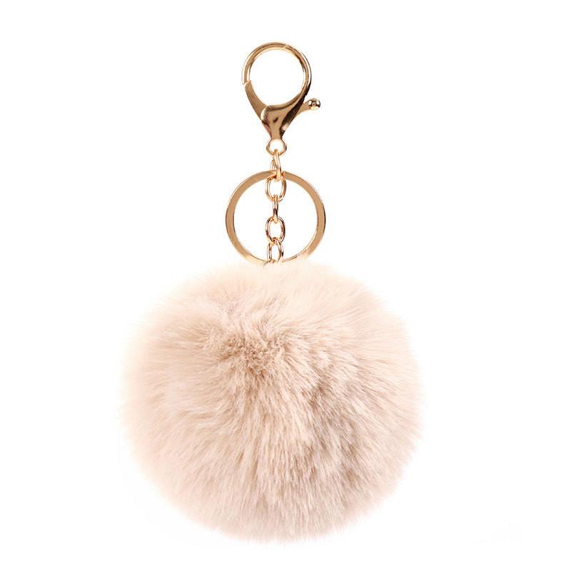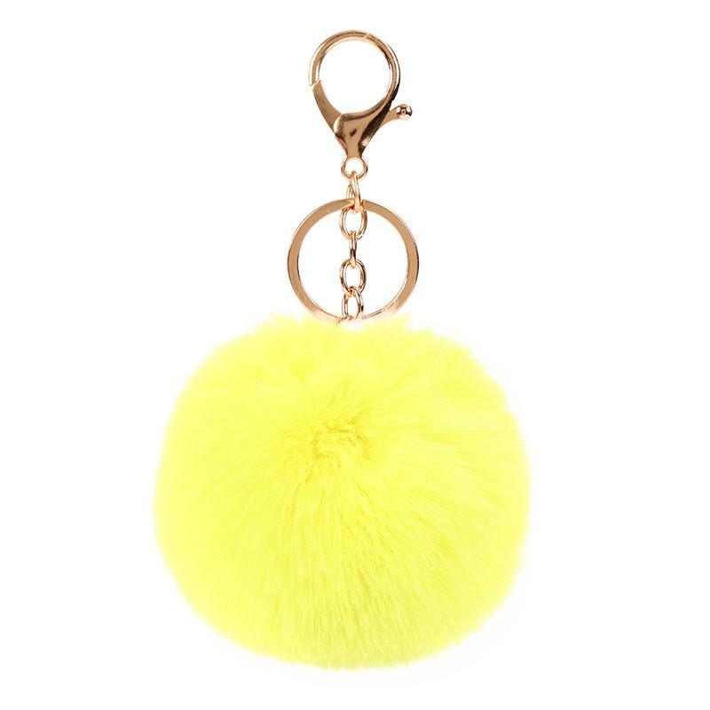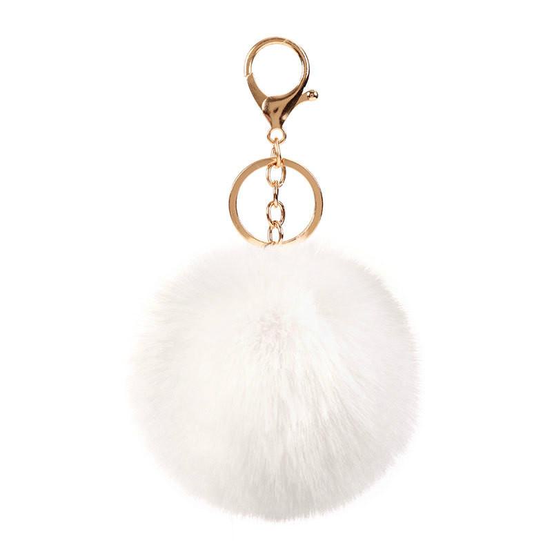 Pompons Keychains Faux Rabbit Fur Keychain Fluffy Key Chains Trinkets Pom Pom Keychain(Gold Color Chain)
