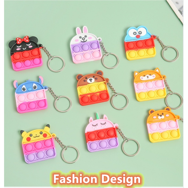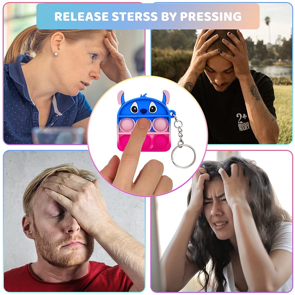 Pop Push it Keychain Fidget Toys Mini Poppers Fidget Sensory Toys Stocking Stuffers for Girls Boys Kids with Anxiety Stress Reliever Office Desk Toy