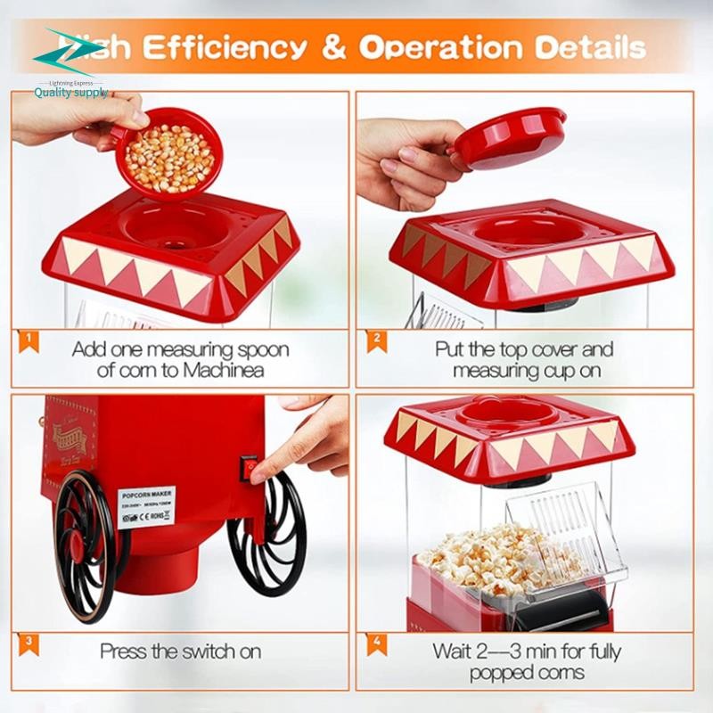 Popcorn Maker,Hot Air Popcorn Machine Vintage Tabletop Electric Popcorn Popper, Healthy and Quick Snack for Home EU Plug