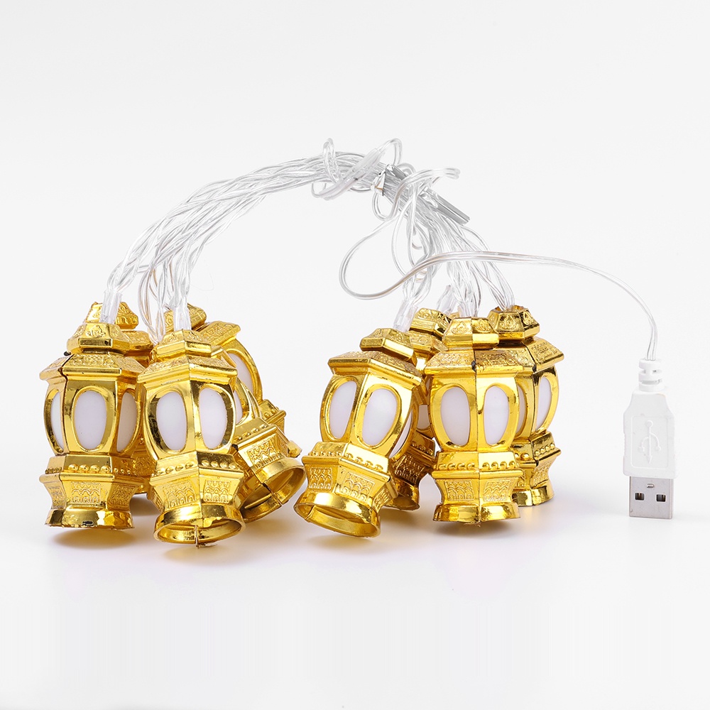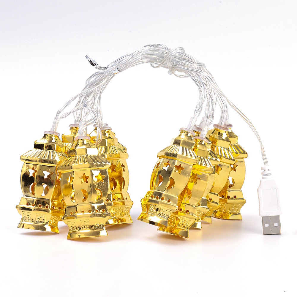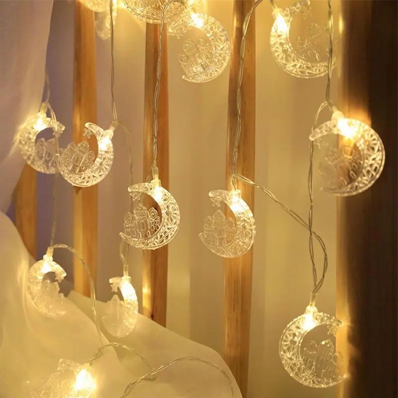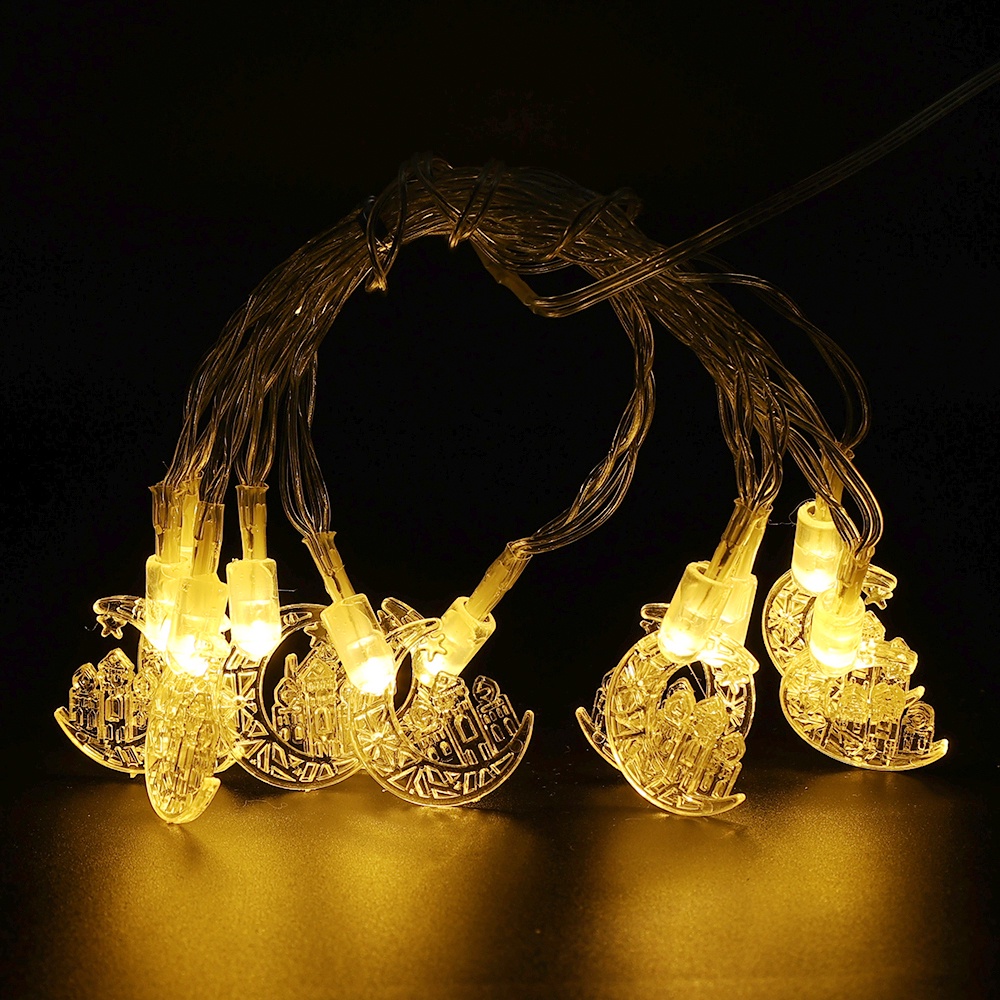 Portable Battery USB Powered LED Ramadan Glowing Castle String Lamp/ DIY Eid Mubarak Atmosphere Decorative Star Moon Garland Light