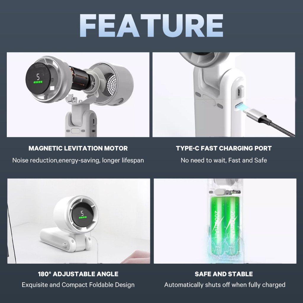 Portable Fan Folding Mini Fan 4000mAh 5 Gears USB Rechargeable Strong Wind Air Turbo Cooler