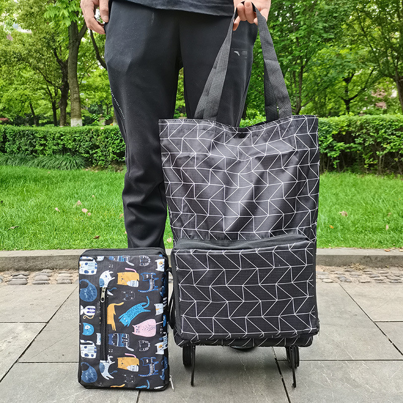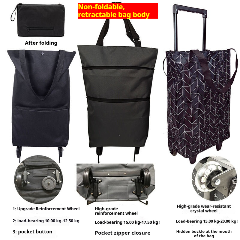 Portable Handheld Shopping Cart Foldable Trolley Bag with Wheels Multi-functional Supermarket Eco-friendly Small Pull Cart
