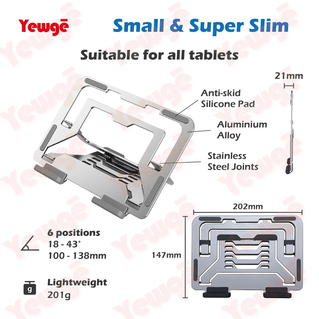 Portable Lightweight Aluminum Laptop / Tablet Stand Foldable Ultra-slim Adjustable Height