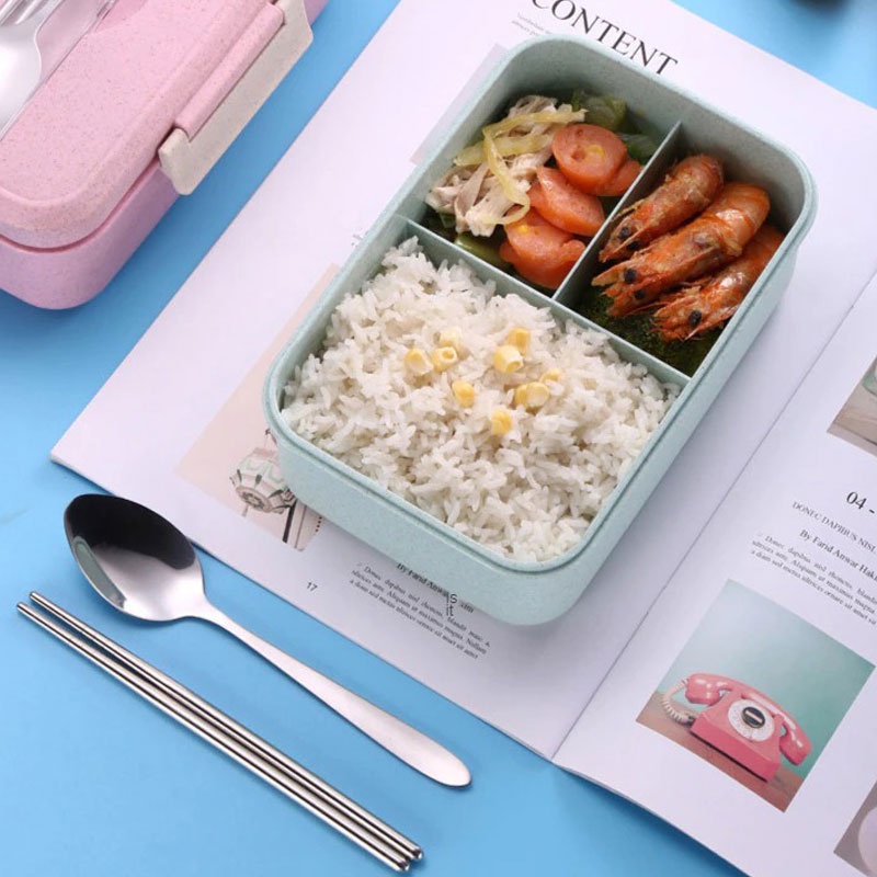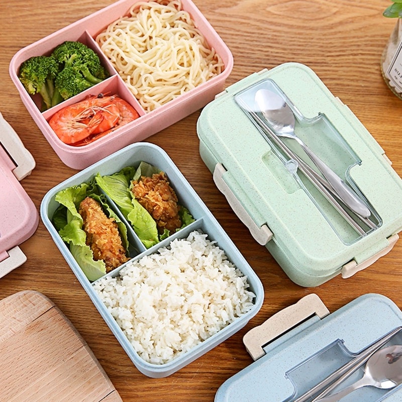 Portable Lunch Box with Spoon Chopsticks Separation Design Microwave Food Storage Children Adult Bento Container Food Container