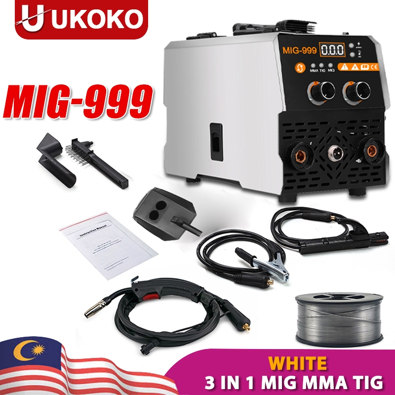 Portable MIG-999 Mesin Welding Machine Gasless Mini MIG Full Set Gasless MIG/MMA/TIG 3 in1 Inverter