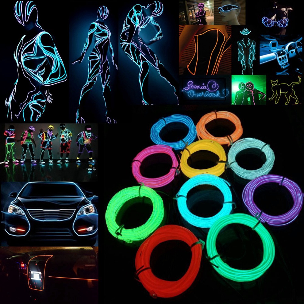 Portable Neon Light El Wire with Battery Pack / Neon Glowing Electroluminescent Wire for Christmas Dance Parties Halloween DIY Costumes Clothing Decoration