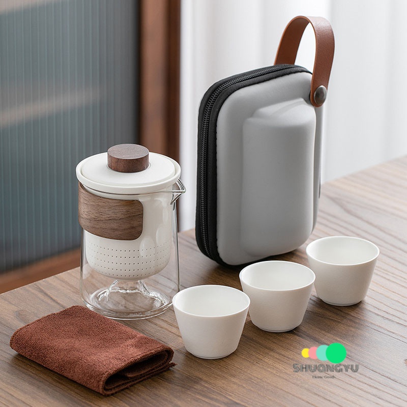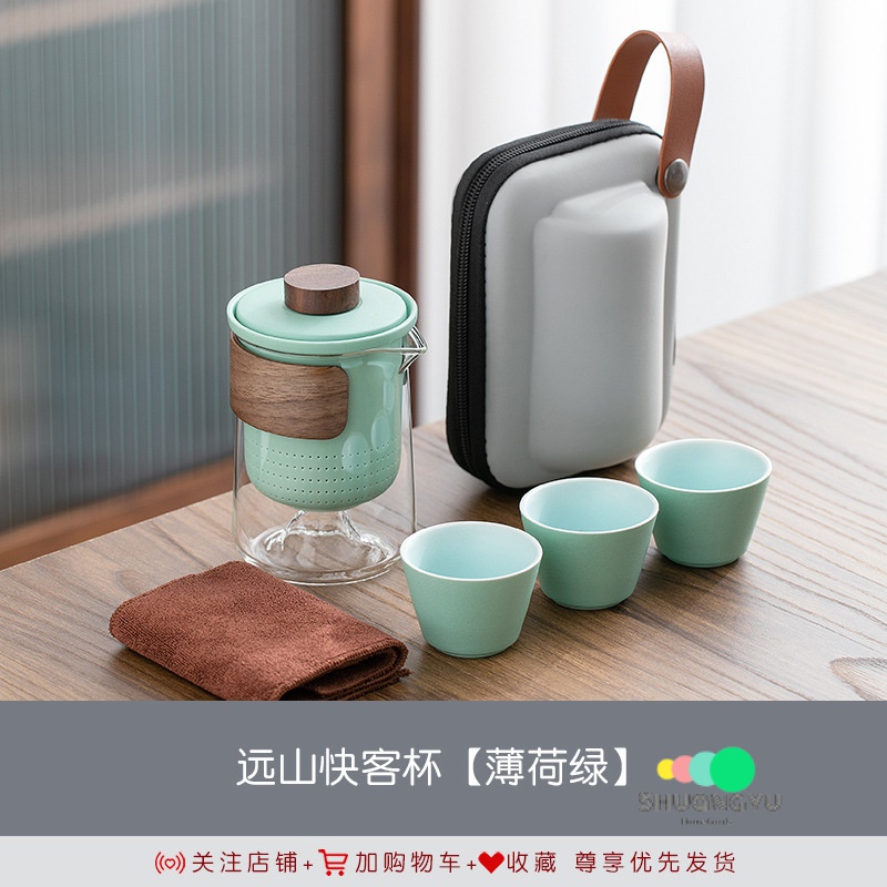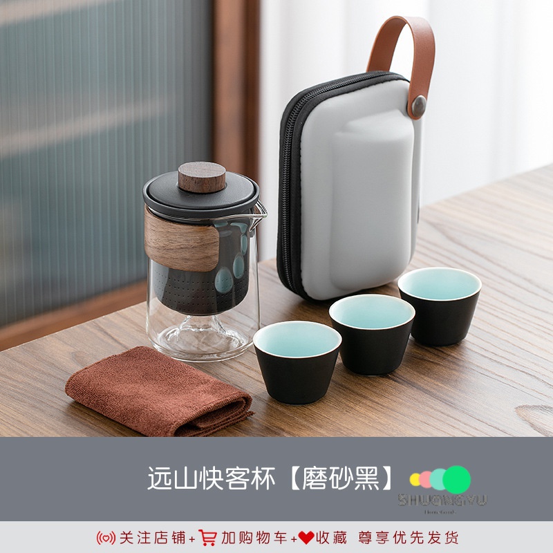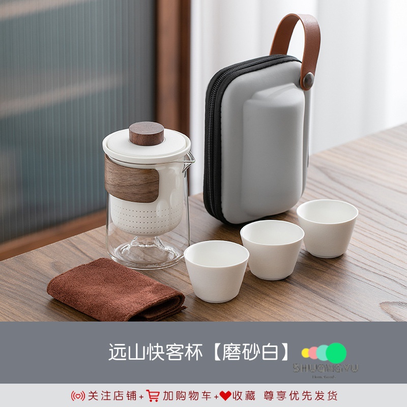 Portable Tea Set Yuanshan Travel Teacup Tea Set Small Set Glass Outdoor Tea Set One Pot Three Cups Ceramic Quick Cup Teapot