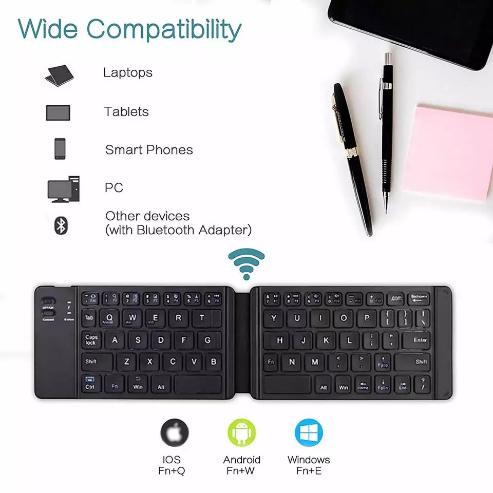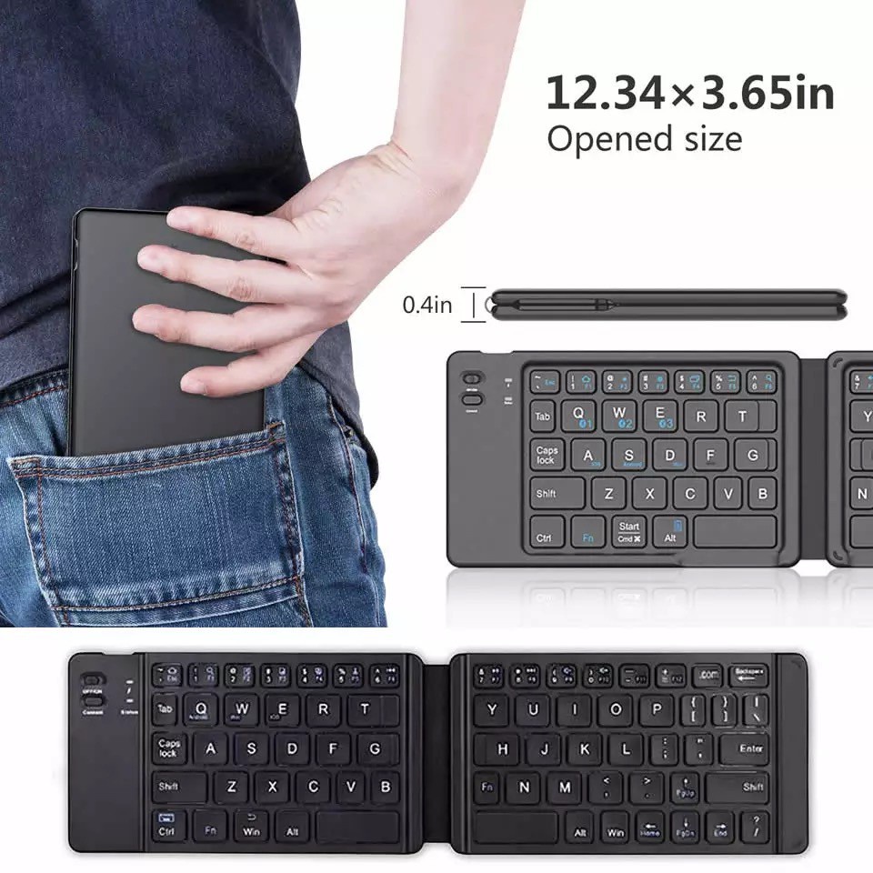 Portuguese Mini Folding Keyboard Wireless Bluetooth Keyboard with Touchpad for Windows, Android, IOS13 Tablet Phone