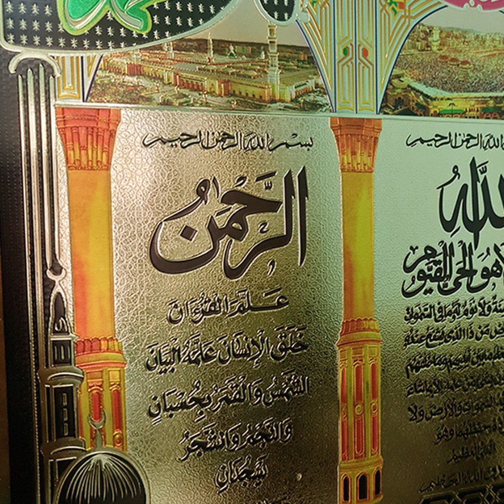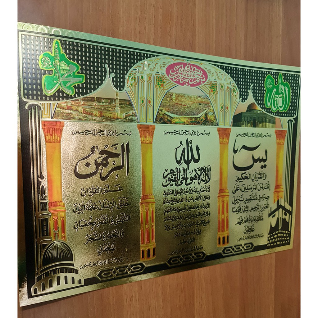Poster of Surah Ar-Rahman, Ayat Kursi and Surah Yasin (Shiny Metallic Gold Poster) (Calligraphy Decoration) (3D) 3d wall sticker
