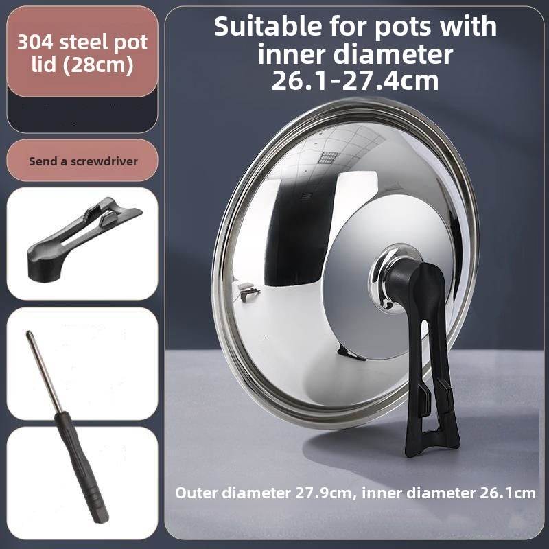 Pot Cover Household Stainless Steel Thickened Tempered Glass Cover Flat Pot Cover Wok Frying Pan Lid Non-Stick Pot Cover/Universal Wok Frying Pan Soup Pot Steamer Pan Iron Cooking Pot Cover