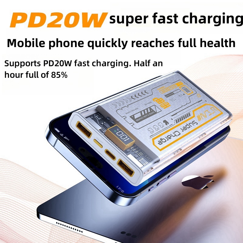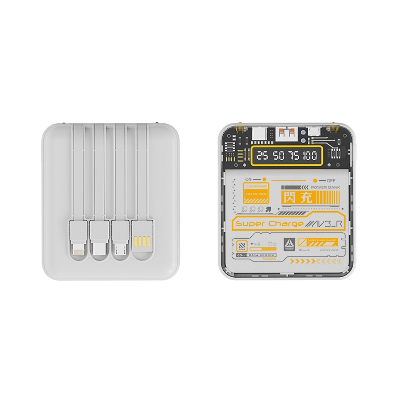 Power Bank 20000mAh mini power bank PD120W powerbank fast charging with 2 Built-in Cable+USB output+Dual LEDs+Dual inputs