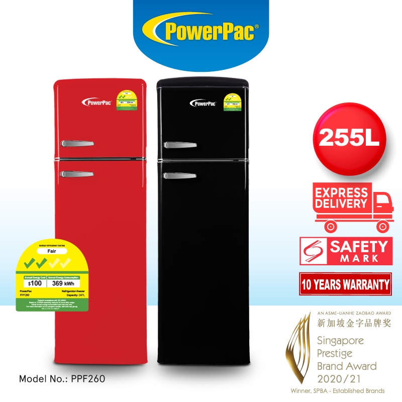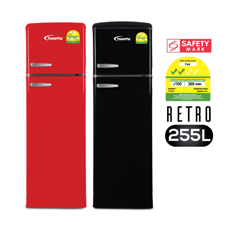 PowerPac 2-Door Fridge 255L Retro Fridge (PPF260)