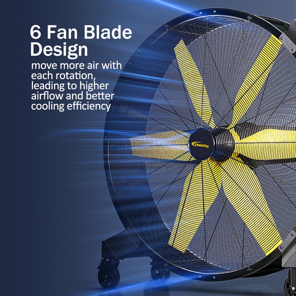 iFan 48” Big Industrial Drum Fan - Powerful, Direct-drive Motor, 6 Blades, Portable, Wheels (IF4822)