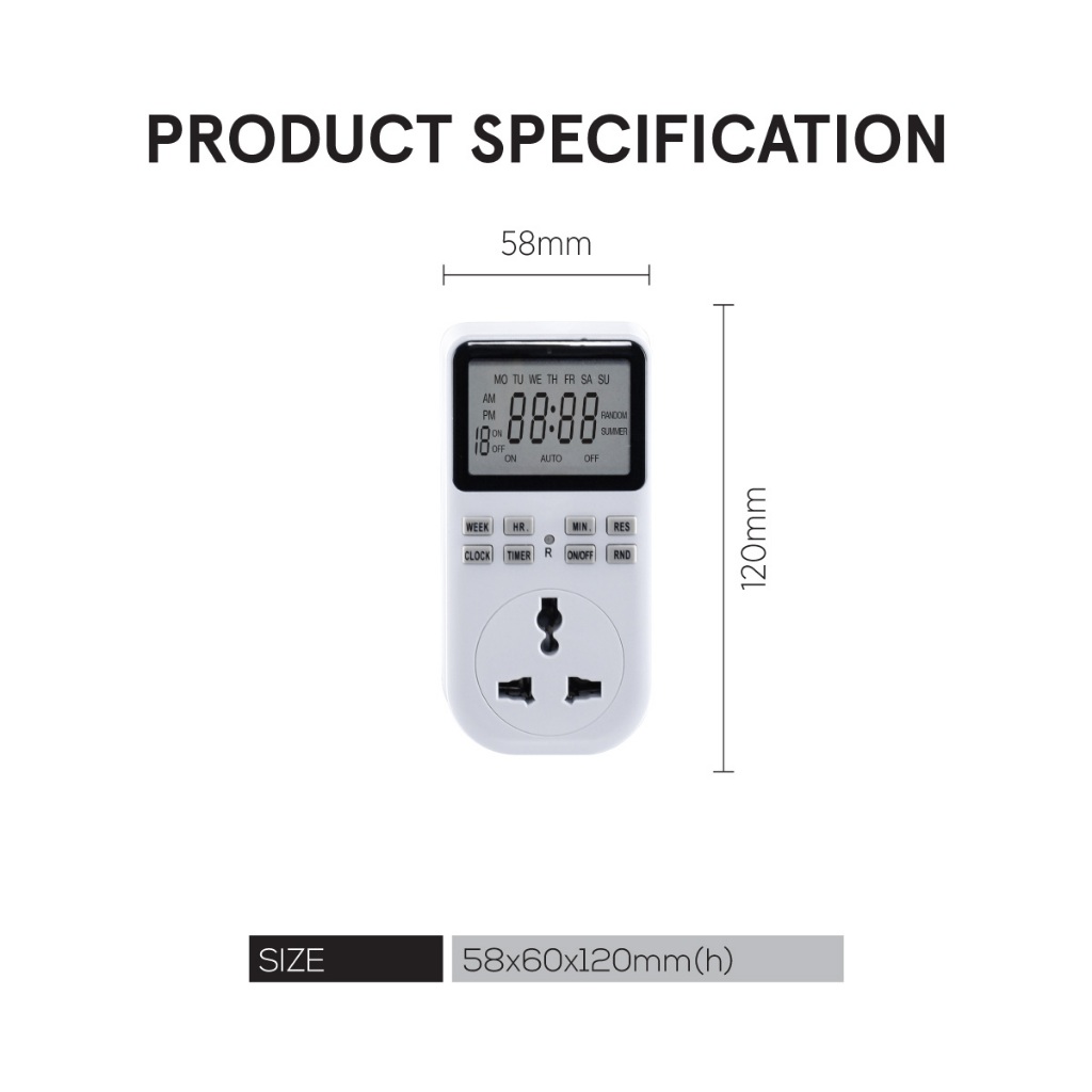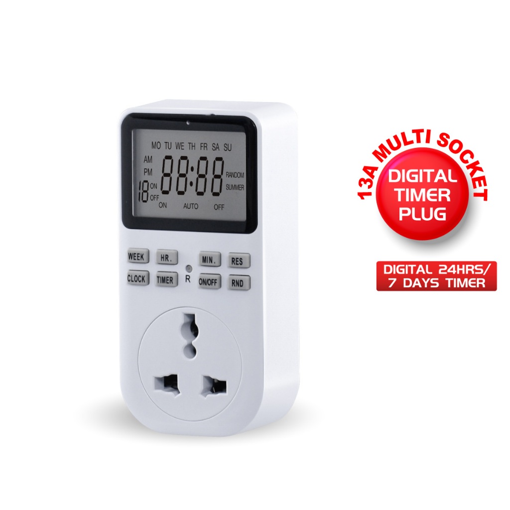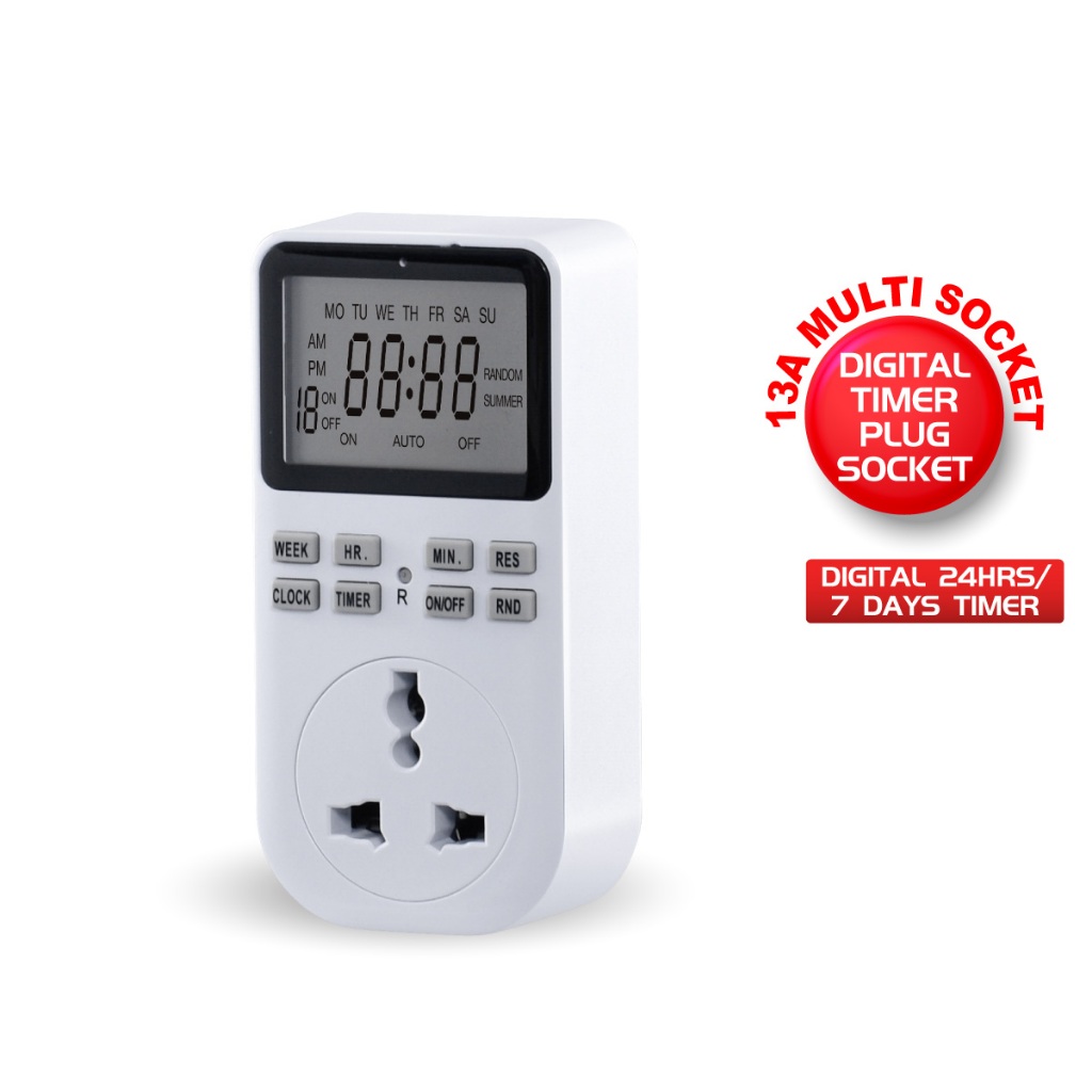 PowerPac Digital Timer Plug Socket, Digital 24hrs / 7 days Timer for 13A Multi Socket (FDD60-D2)