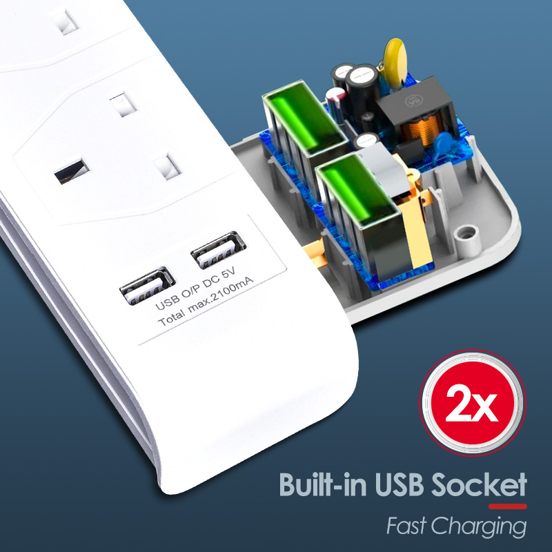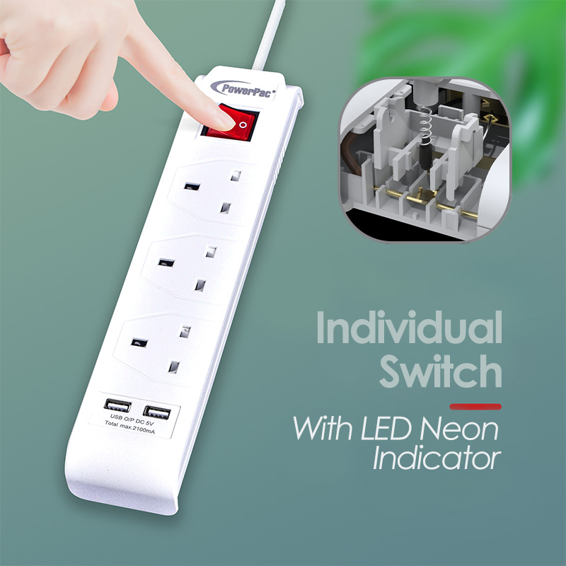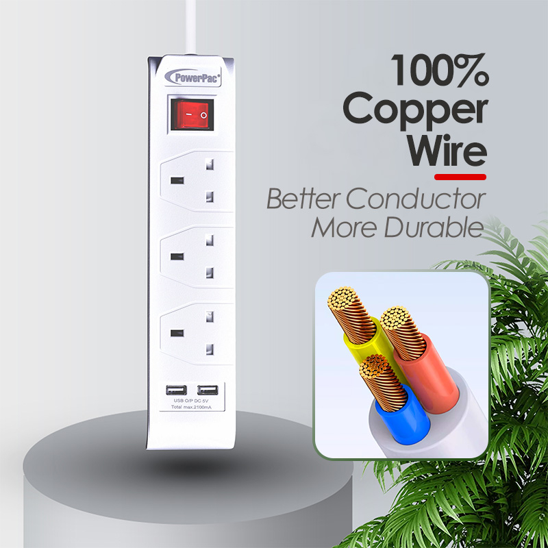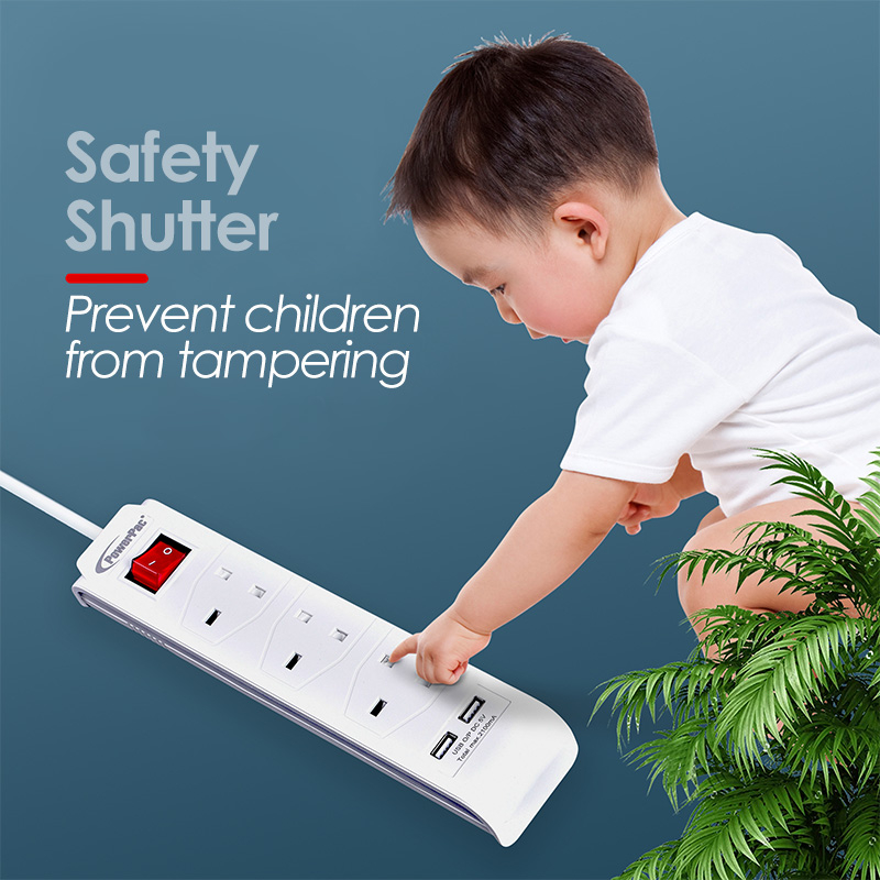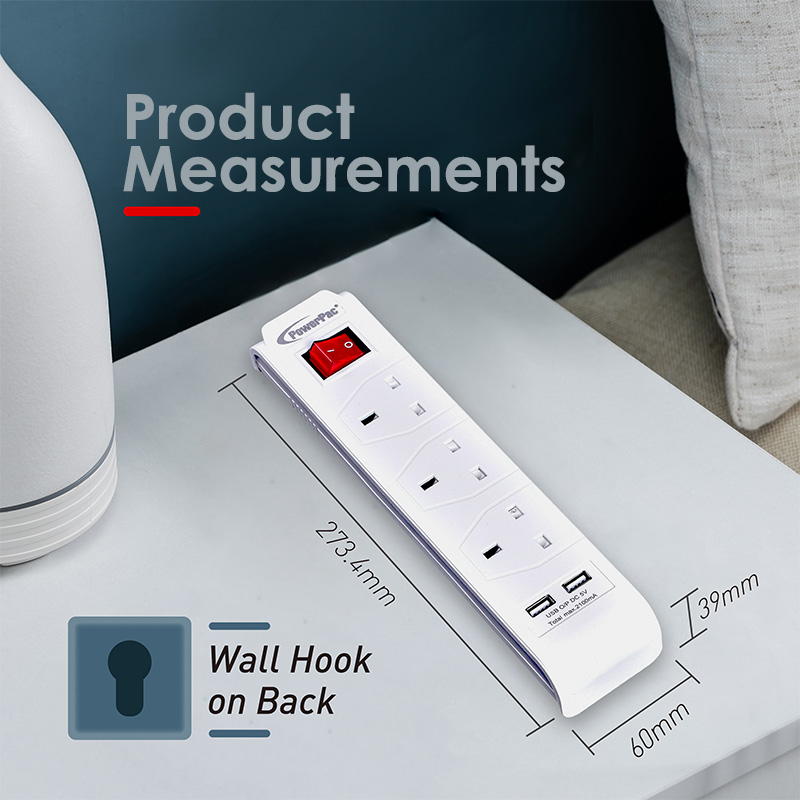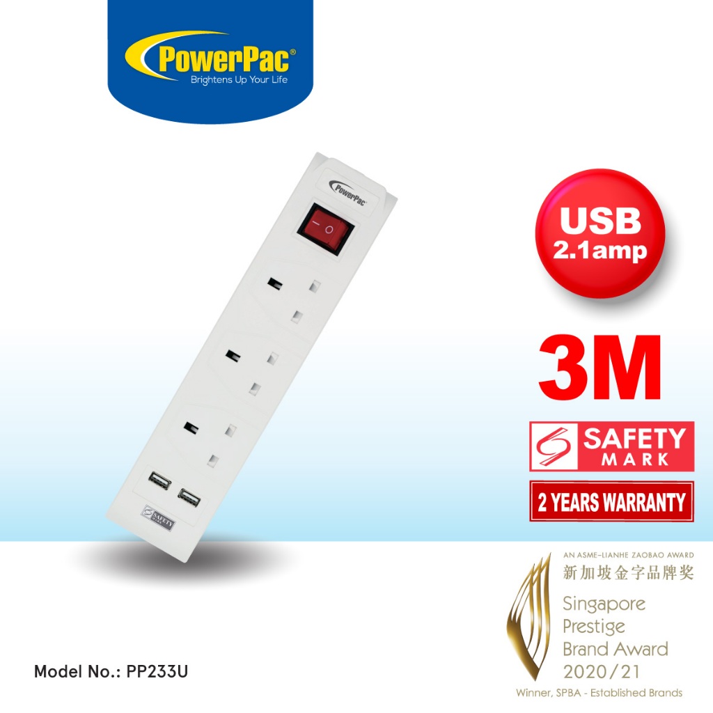 PowerPac Extension Cord, Extension Socket, Power with USB Charger 3way 3M (PP233U)