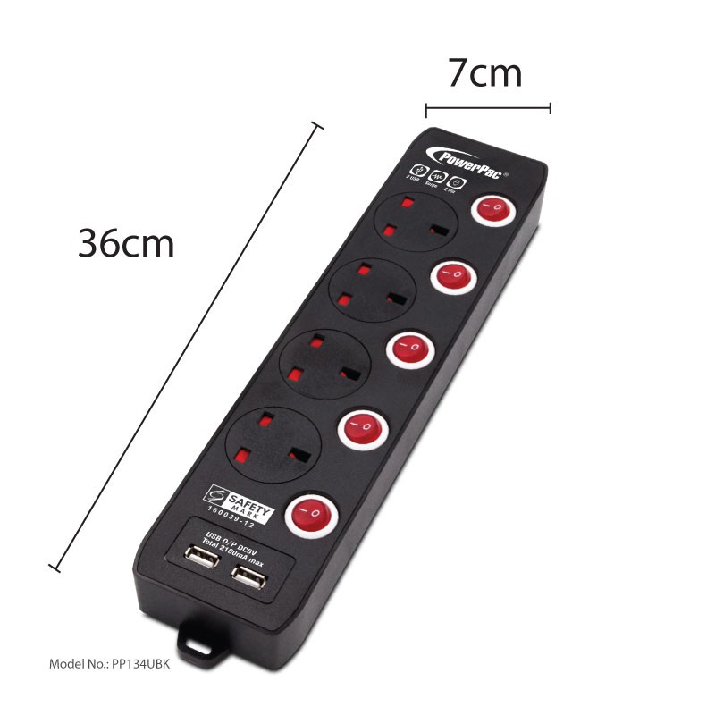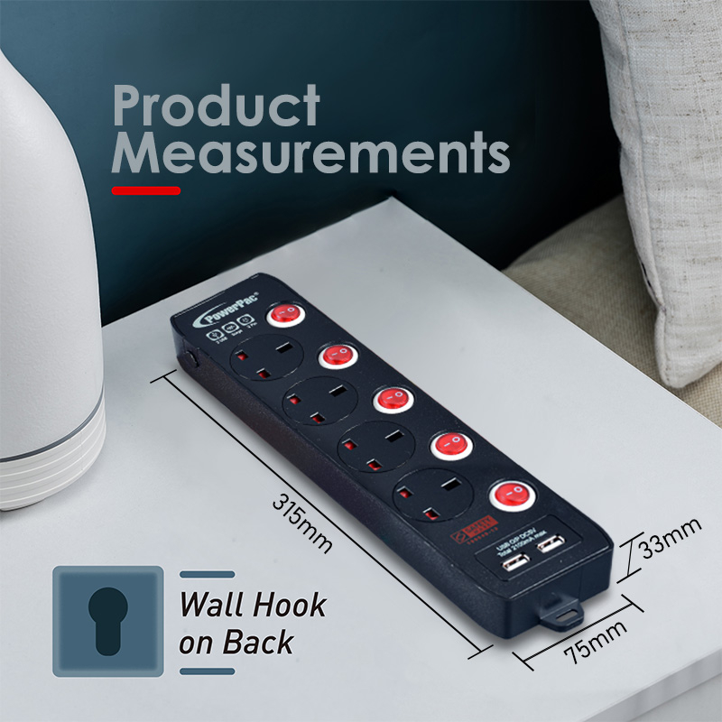 PowerPac Extension Cord, Extension Socket with USB Charger, Power Cord with USB Charger 3 Meter (PP133UBK to PP135UBK)