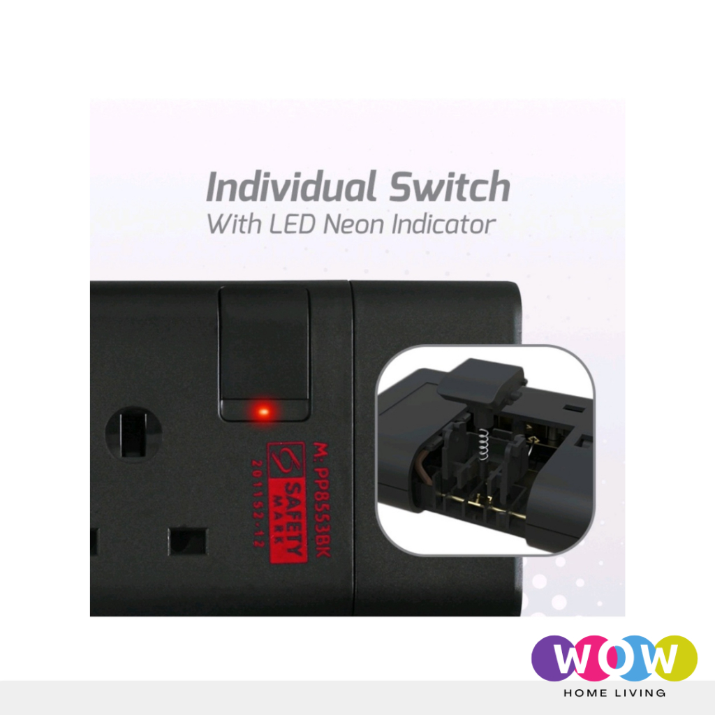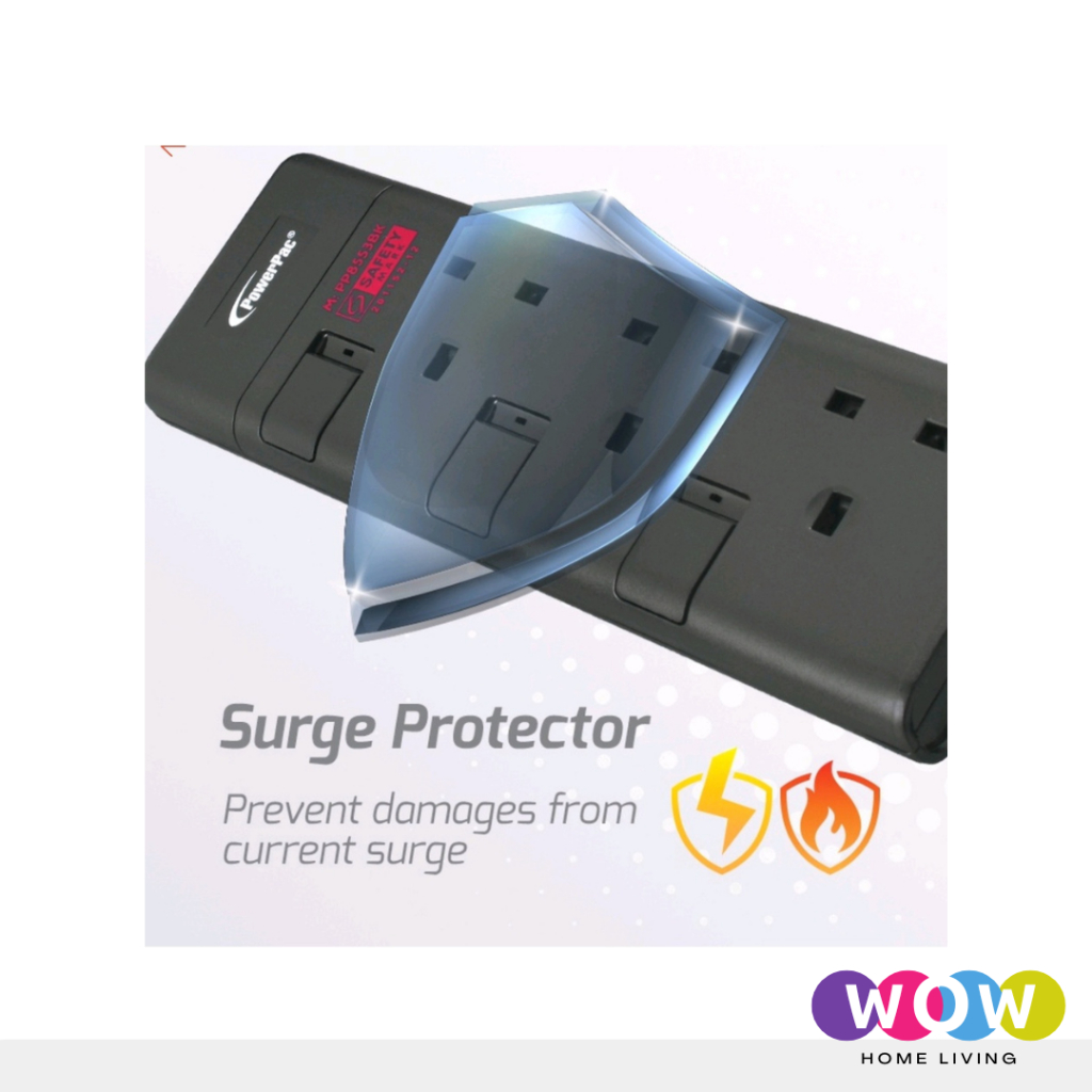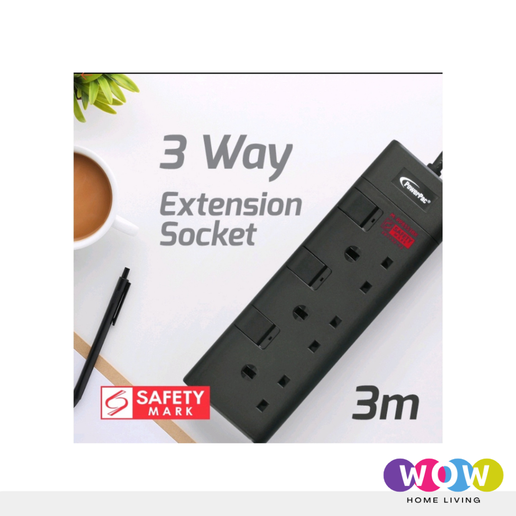 PowerPac Extension Socket 3 Meter Cable Available In 3 Way / 4 Way / 5 Way