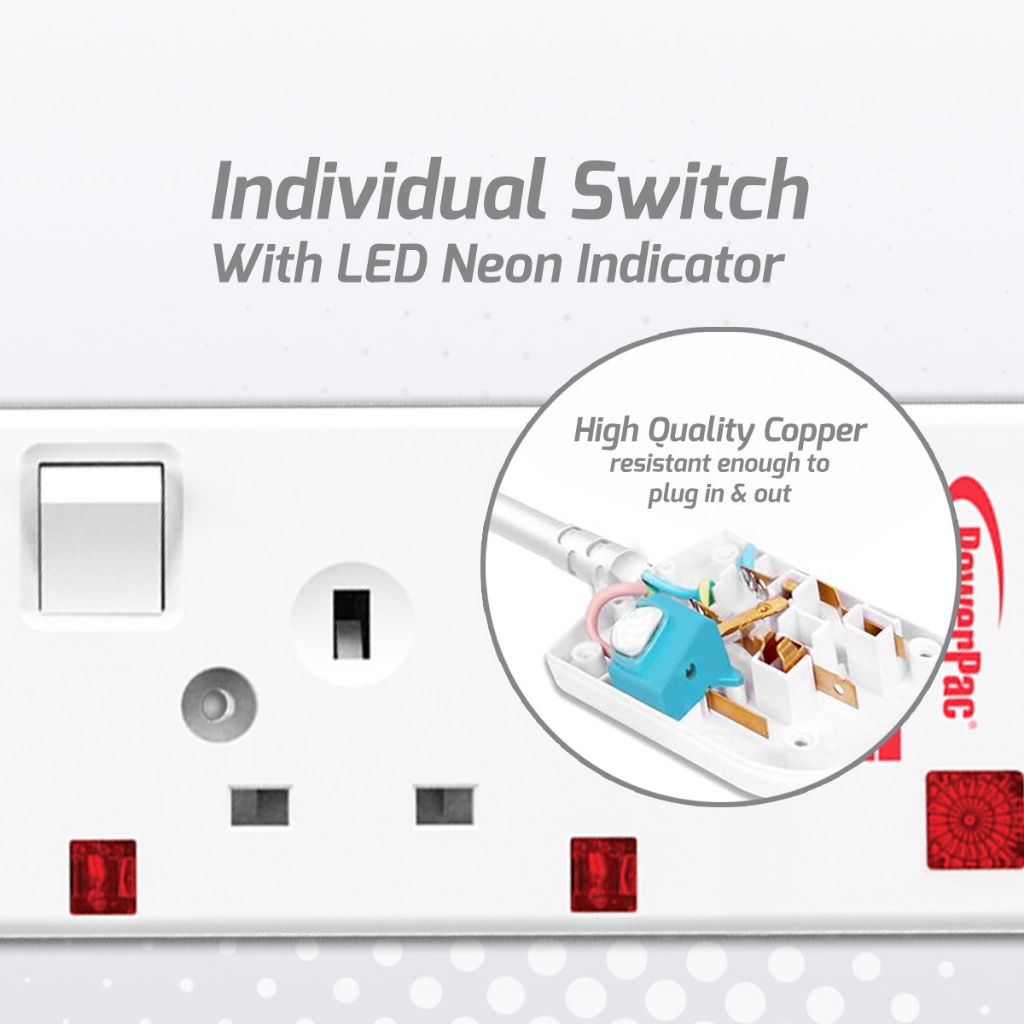 PowerPac Extension Socket Extension Cord, Power Cord, Power Extension 4 way 3 metre. (PP3884N)