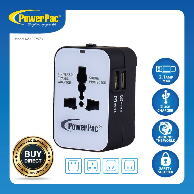 PowerPac Multi Travel Adapter With 2x USB Charger US UK EU AU Adapter (PP7973)