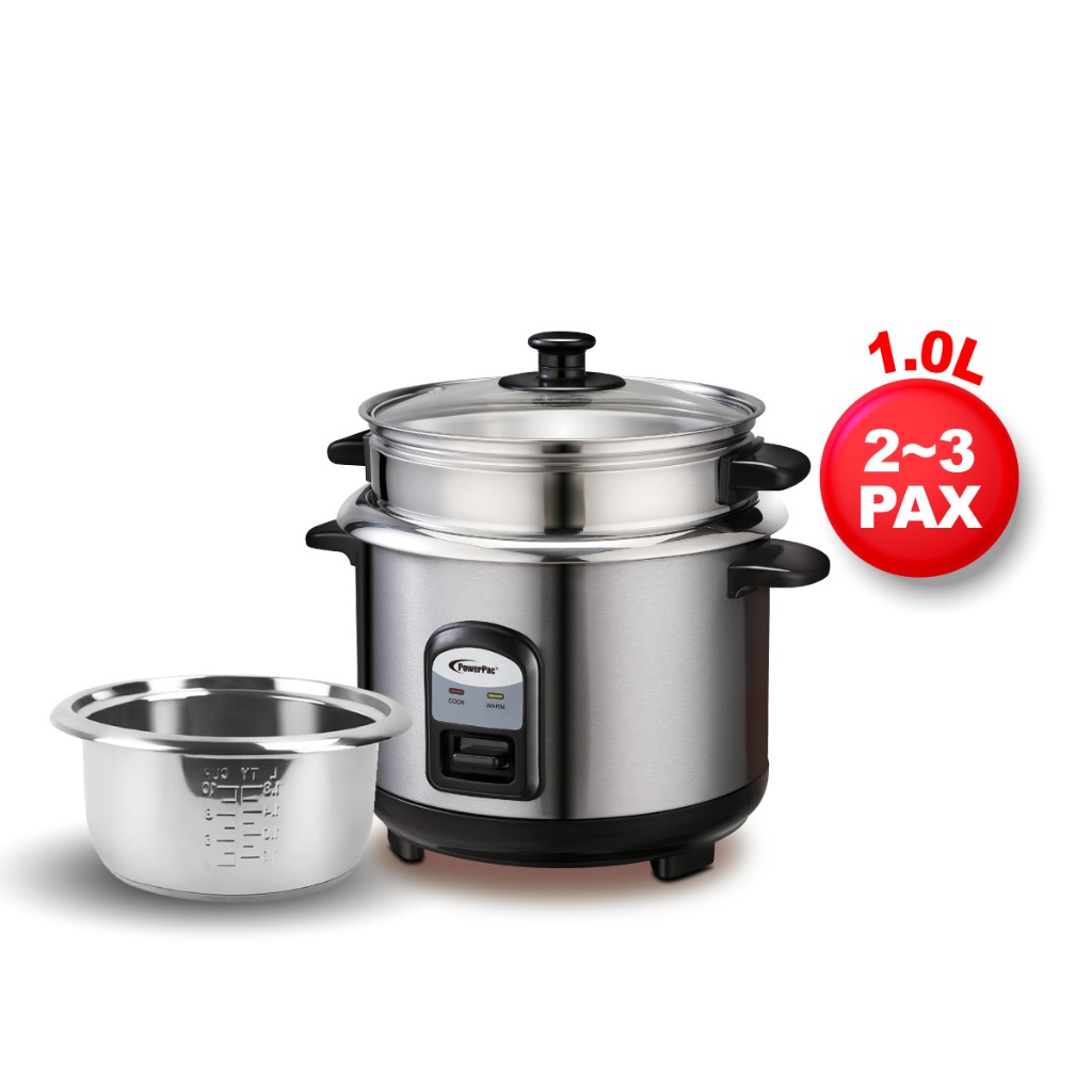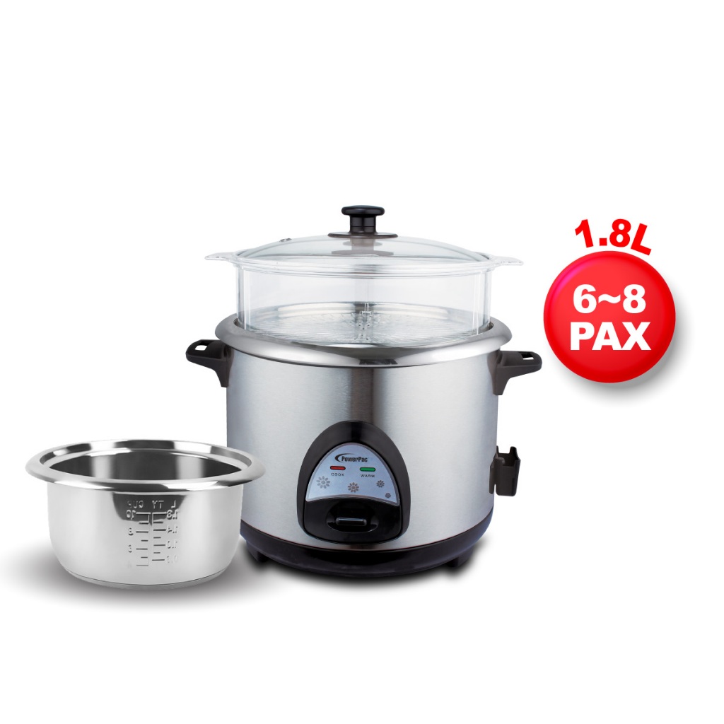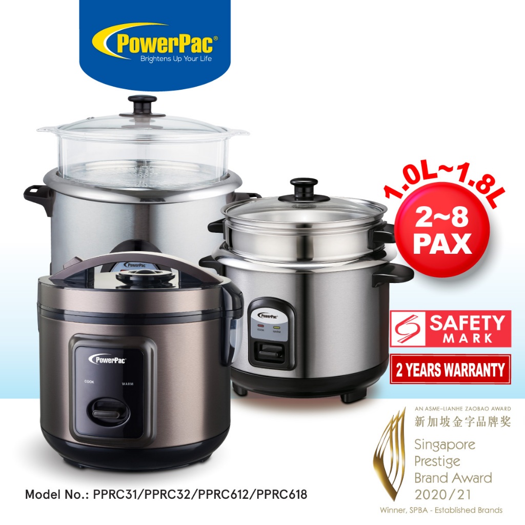 PowerPac Rice Cooker 1.0L/1.8L, Rice Cooker with Stainless Steel Pot and Food Steamer (PPRC31/PPRC32/PPRC612/PPRC618)