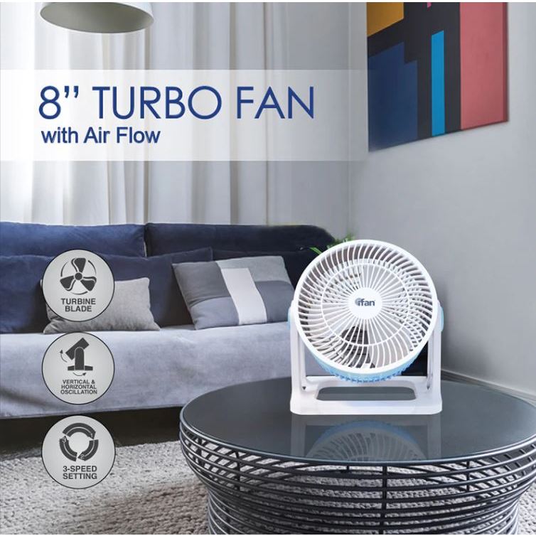 PowerPac iFan Air Circulator 8" Turbo Fan, Desk, Table Fan with Airflow (IF7408)