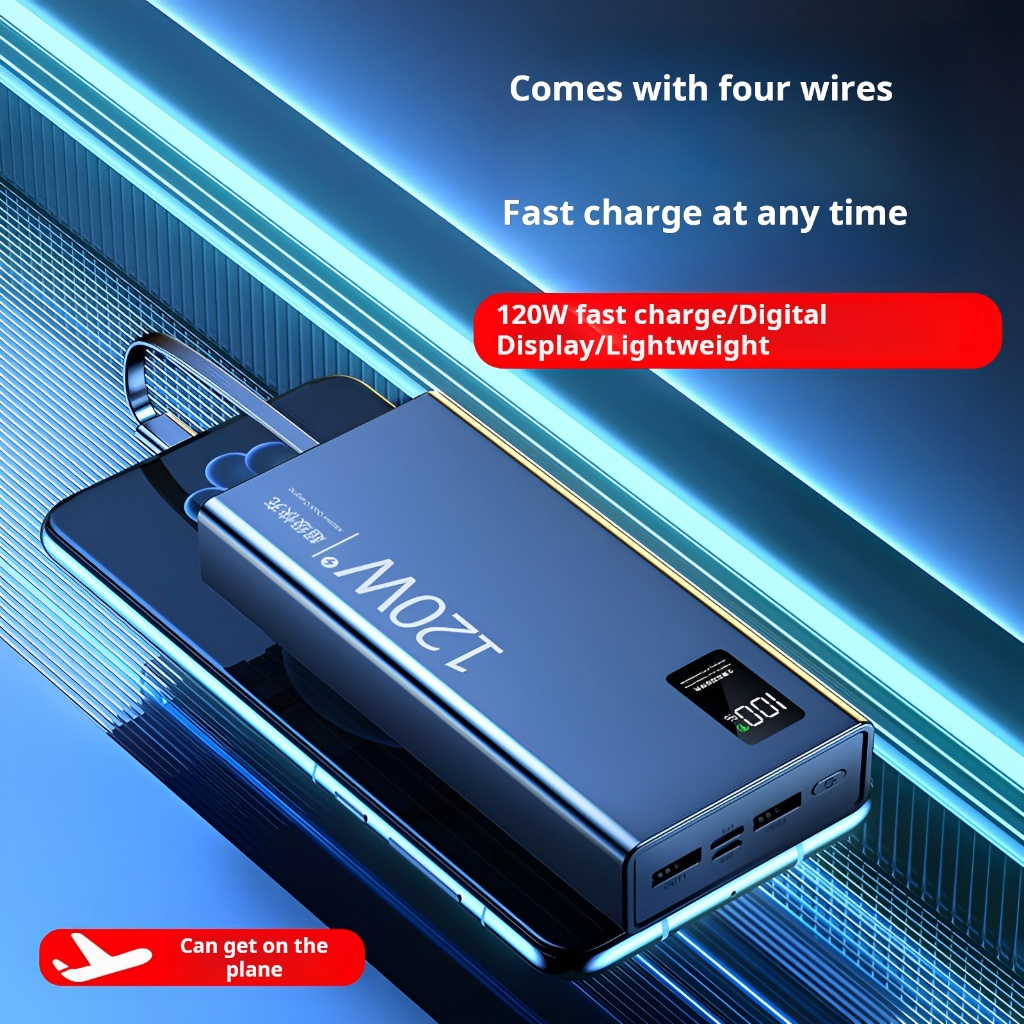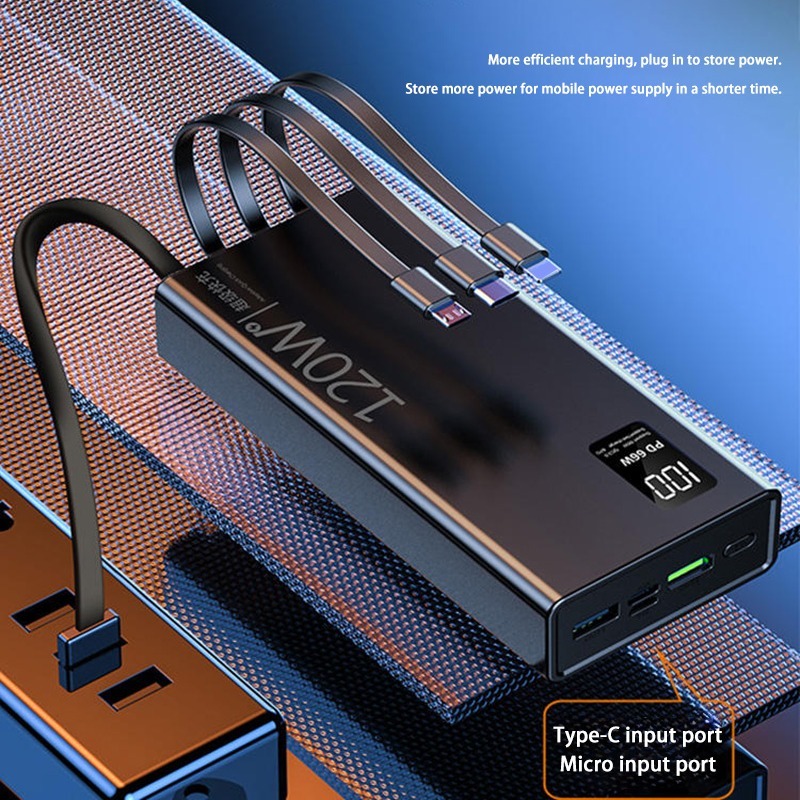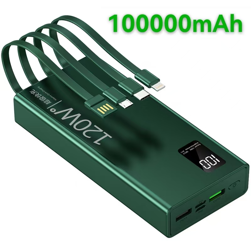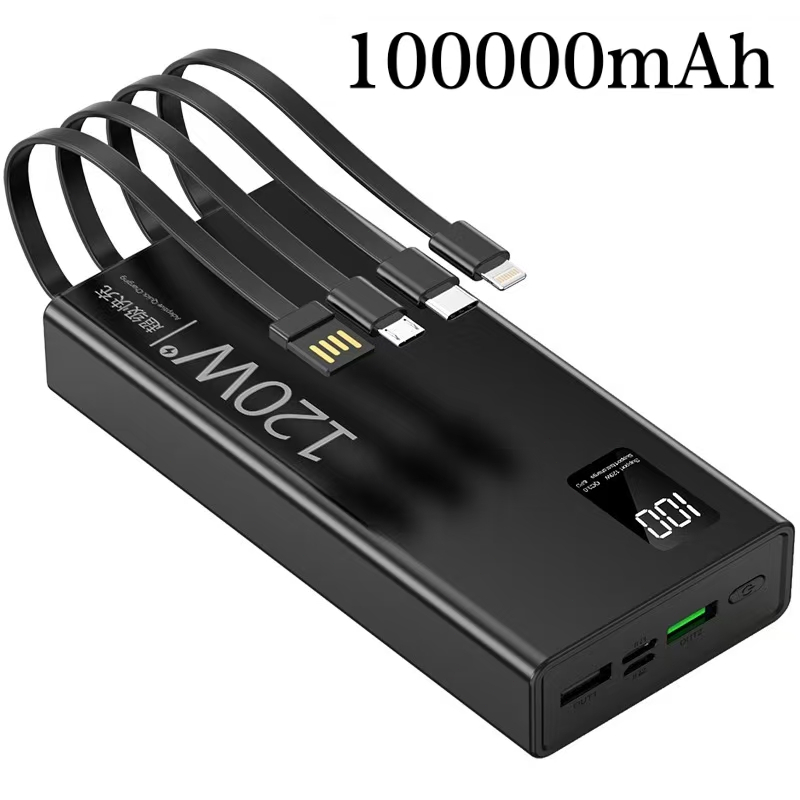 Powerbank 100000mAh 120W Super Fast Charge With 4 Cable Power Bank LED Display Big Battery Fast Charging