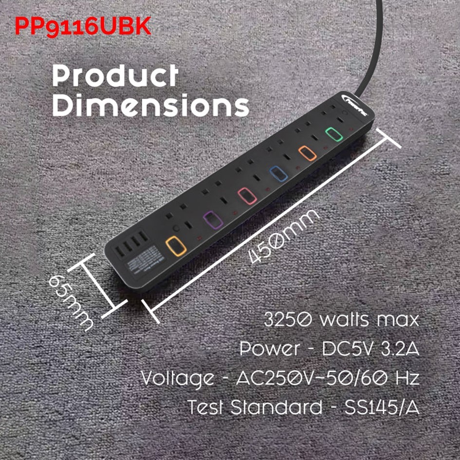 Powerpac 3W/4W/5W/6W Power Extension Socket Extension with 4x USB Port Charger / PP9113UBK/PP9114UBK/PP9115UBK/PP9116UB
