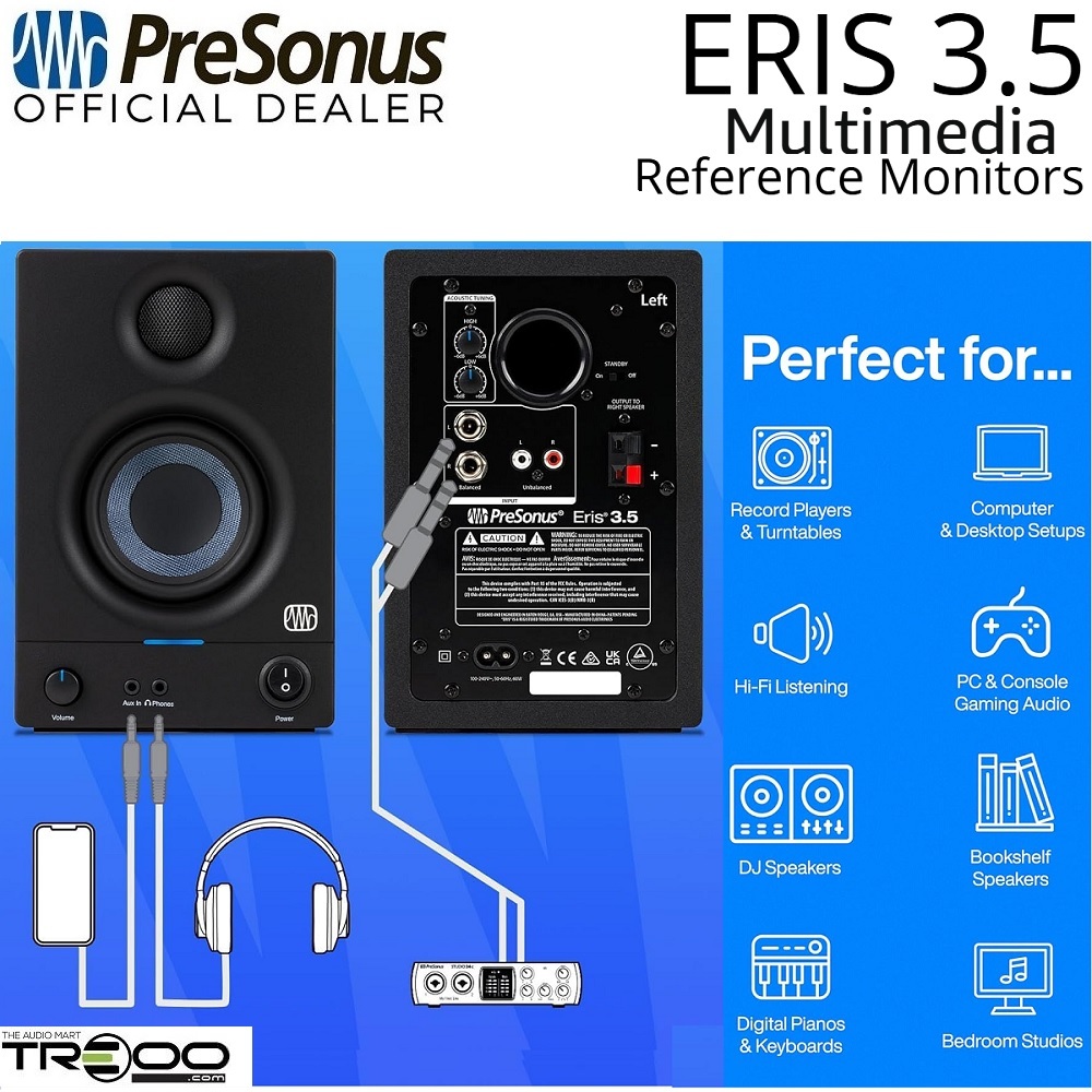 PreSonus Eris 3.5 2nd Gen Studio Monitoring Wired Desktop Bookshelf Speakers