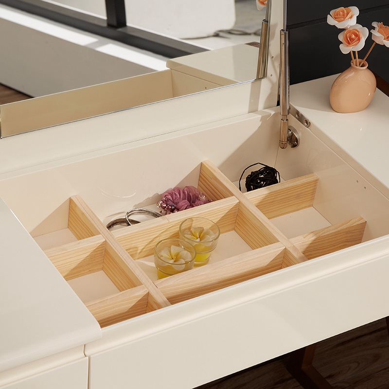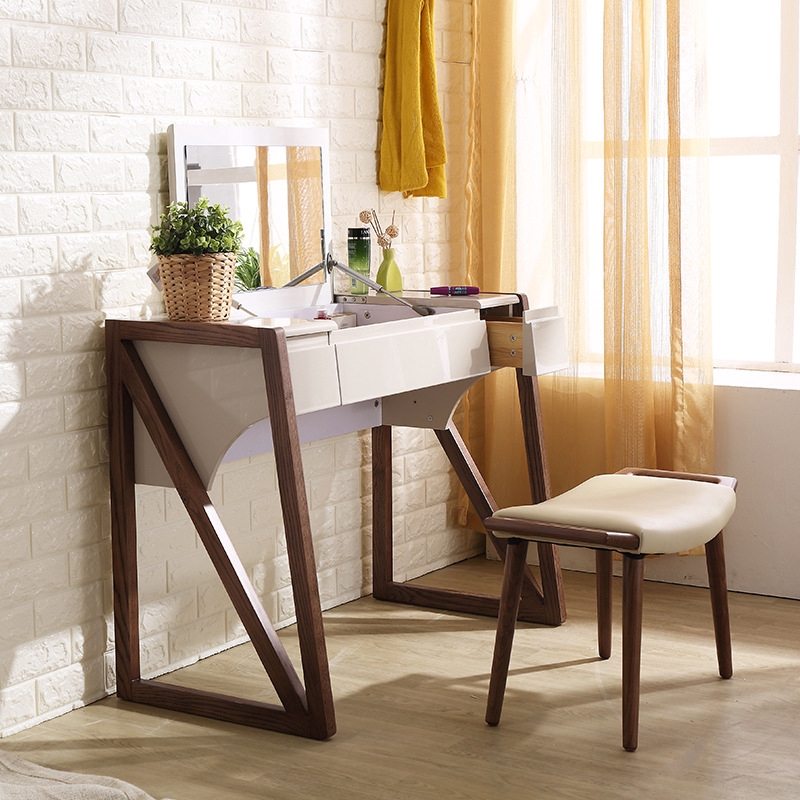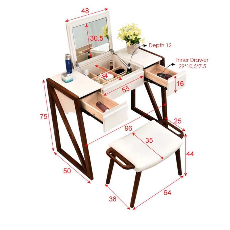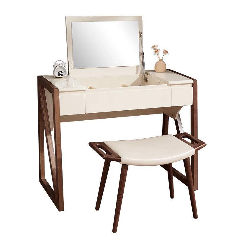 Premium Gloss Wooden Dressing Table With Fold Down Mirror Set
